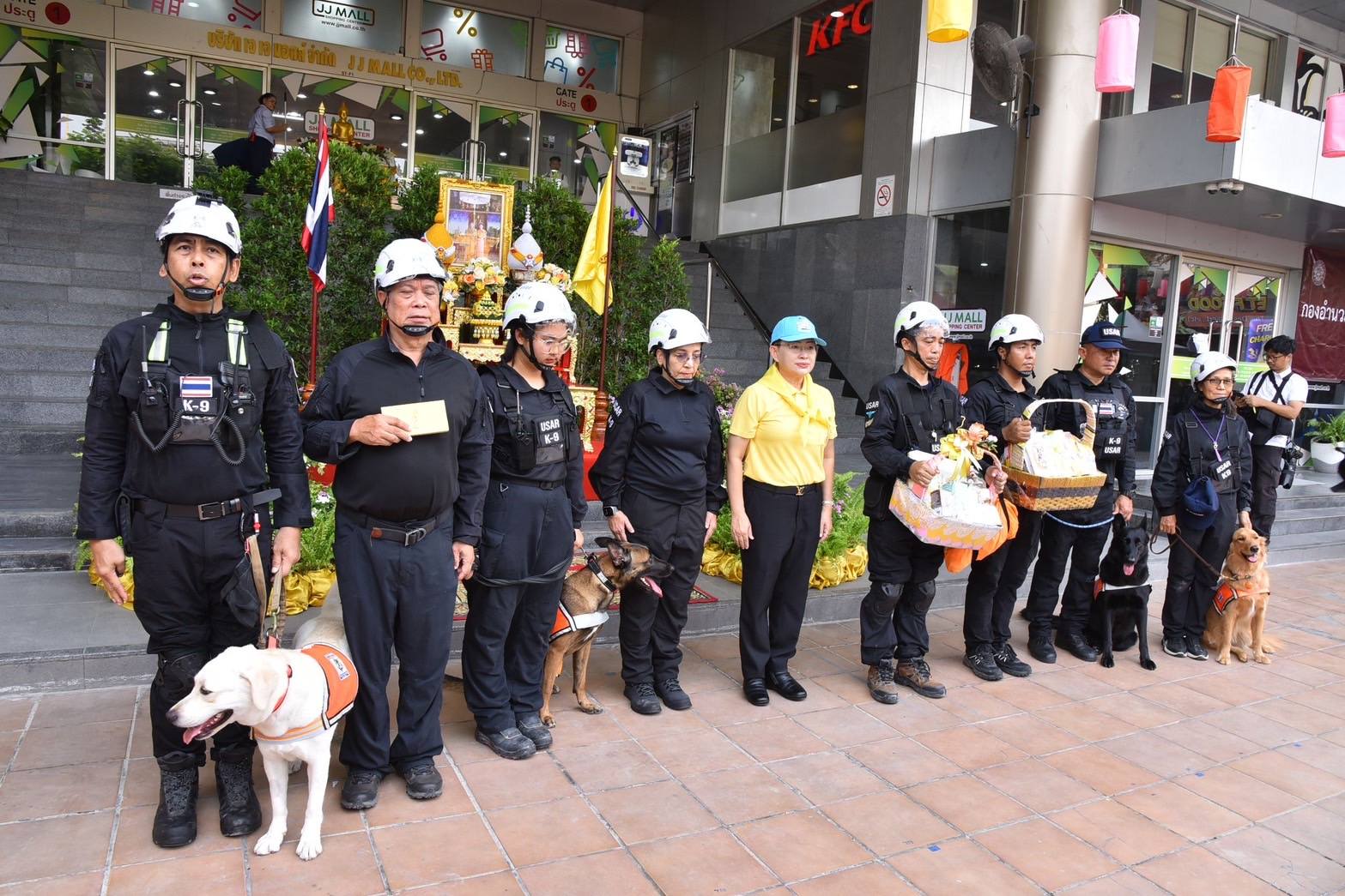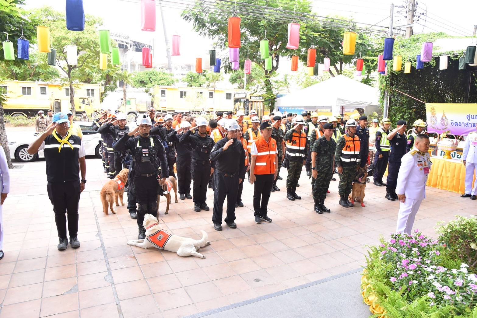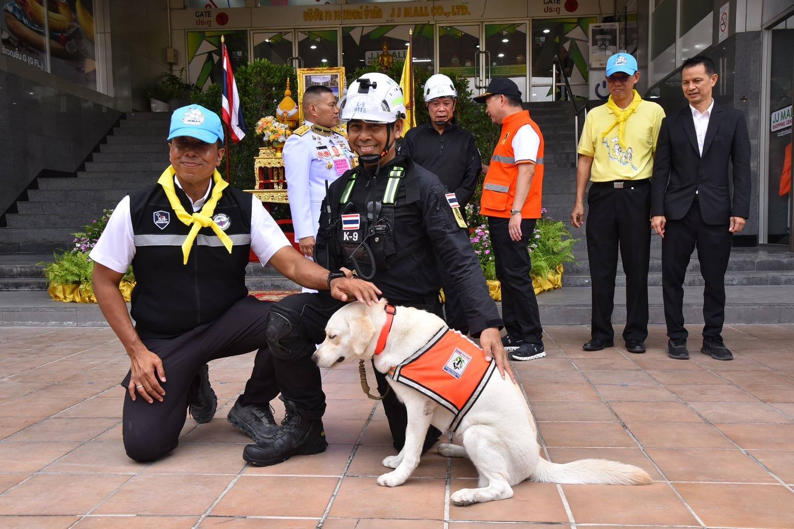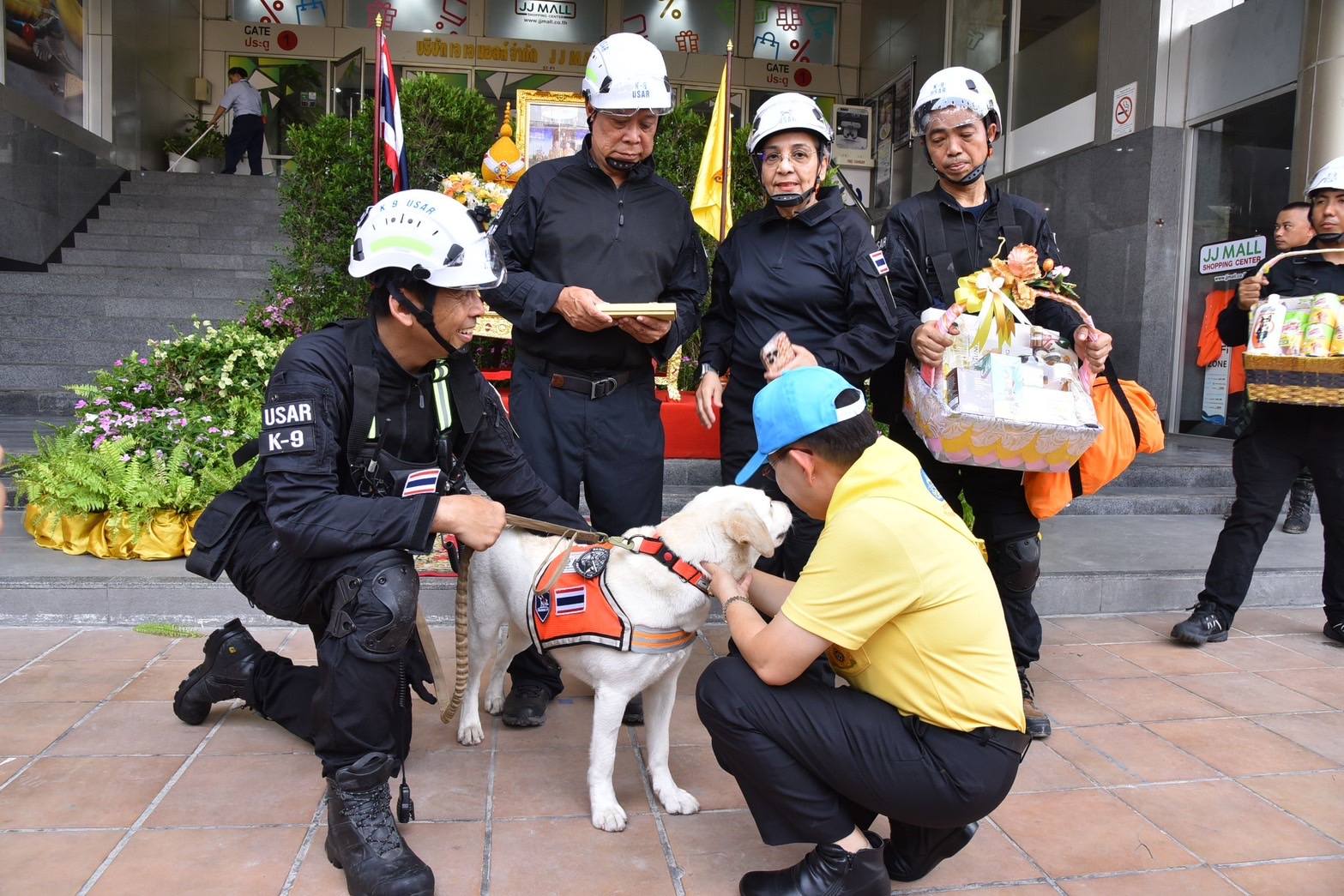 10 เมษายน 2568 พระบาทสมเด็จพระเจ้าอยู่หัว และสมเด็จพระนางเจ้าฯ พระบรมราชินี ทรงพระกรุณาโปรดเกล้าฯ ให้ พลเรือตรี สกาย เภกะนันทน์ เป็นผู้เชิญสิ่งของพระราชทาน ซึ่งประกอบด้วย เงินจำนวน 300,000 บาท พร้อมตะกร้าสิ่งของผลิตภัณฑ์อาหารและบำรุงสุขภาพสำหรับสุนัข เพื่อเป็นขวัญกำลังใจ แก่สุนัขค้นหาและกู้ภัย (K9) จำนวน 3 หน่วยงาน ได้แก่ สุนัขตำรวจ สุนัขทหาร และสุนัขทีม USA Thailand โดยมี นายชัชชาติ สิทธิพันธุ์ ผู้ว่าราชการกรุงเทพมหานคร พญ.วันทนีย์ วัฒนะ ปลัดกรุงเทพมหานคร ผู้อำนวยการเขตจตุจักร และผู้บริหารหน่วยงานที่เกี่ยวข้องร่วมพิธี ณ ศูนย์บัญชาการเหตุการณ์ เขตจตุจักร