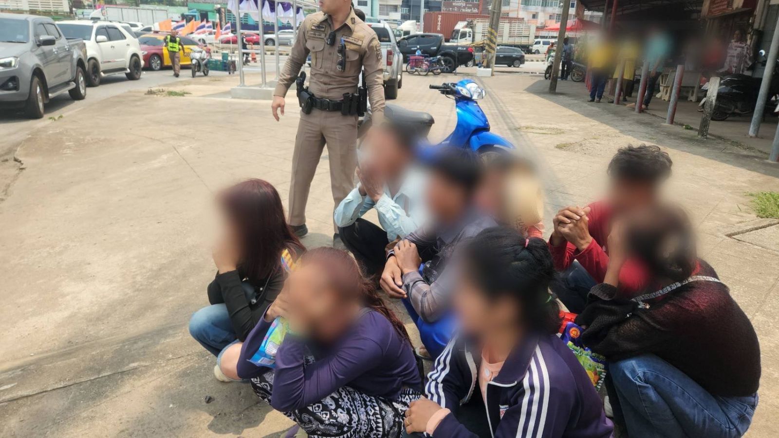 จากการตรวจสอบพบชาวกัมพูชา จำนวน 8 คน เป็นชาย 3 คน หญิง 5 คน สอบถามคำให้การผู้ต้องหาต่างด้าว เบื้องต้นที่สามารถสื่อสาร และเข้าใจภาษากัมพูชาและภาษาไทยได้ดี ทราบว่า ชาวกัมพูชาที่โดยสารมา ไม่มีหนังสือเดินทาง เดินทางมาจากประเทศกัมพูชาเข้ามายังไทยผ่านทางบ้านอ่างศิลา ต.โนนหมากมุ่น อ.โคกสูง จ.สระแก้ว เพื่อไปทำงานที่สวนผลไม้ ในพื้นที่ อ.ขลุง จ.จันทบุรี