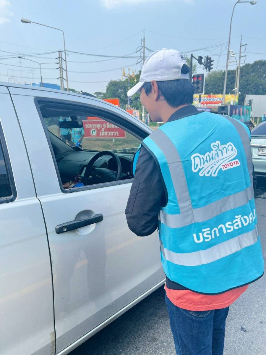 นอกจากนี้ โตโยต้ายังได้ร่วมมือกับภาครัฐ โดย กรมคุมประพฤติ กระทรวงยุติธรรม ในการนำทีมจิตอาสาลงพื้นที่ รณรงค์ขับขี่ปลอดภัย ลดอุบัติเหตุในช่วงเทศกาล ตลอดจนร่วมมือกับผู้แทนจำหน่ายโตโยต้า ในการจัดจุดพักรถ เพื่อให้บริการ น้ำดื่ม ผ้าเช็ดรถ แก่ประชาชนที่จะเดินทางไปยังภูมิภาคต่าง ๆ ในช่วงเทศกาลสงกรานต์ ระหว่างวันที่ 8 - 17 เมษายน 2568 ใน 6 จังหวัด ได้แก่