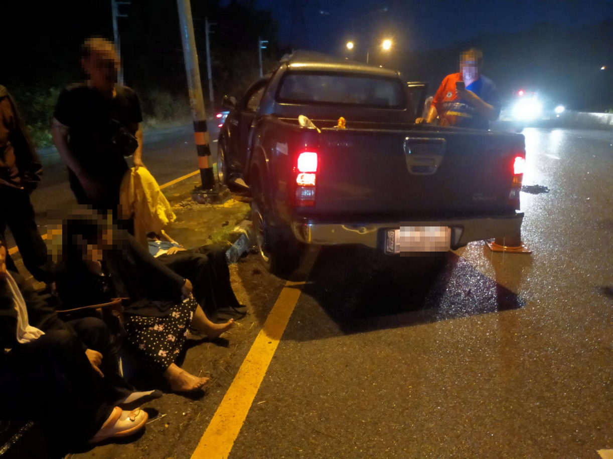ที่เกิดเหตุ พบรถกระบะ โตโยต้า สีดำ ป้ายทะเบียน อุตรดิตถ์ ลักษณะเสียหลักขึ้นเกาะกลางถนนและชนกับเสาไฟ มีผู้ได้รับบาดเจ็บในที่เกิดเหตุ 10 ราย เป็นชาย 1 ราย และหญิง 9 ราย ทางอาสาสมัครช่วยเหลือและนำส่งโรงพยาบาลสมเด็จพระยุพราชเด่นชัย