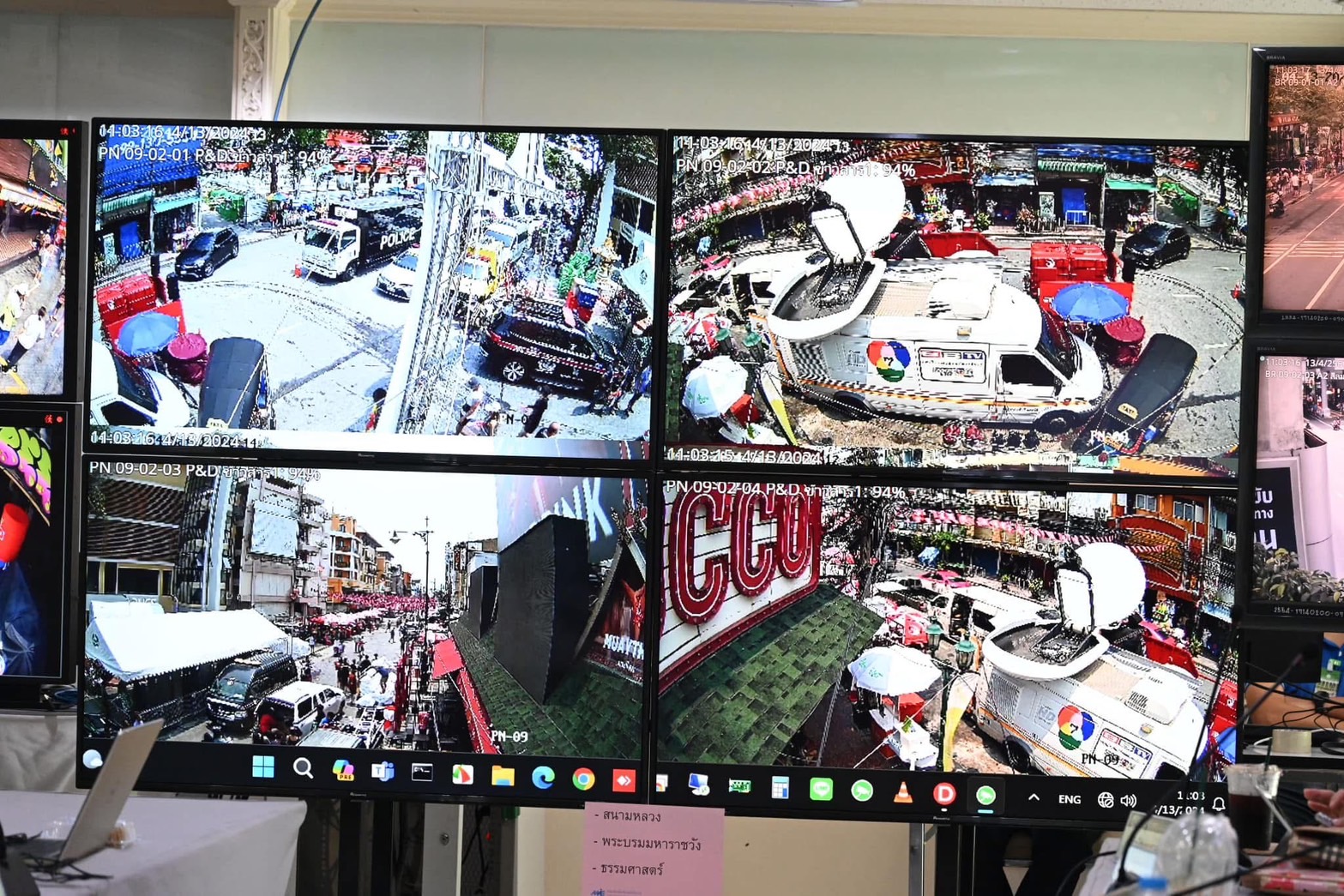 ด้านสำนักการจราจรและขนส่ง เตรียมความพร้อมในช่วงเทศกาลสงกรานต์และ 7 วันอันตรายประจำปี 2568 โดยดำเนินการติดตั้งกล้องวงจรปิด CCTV ในพื้นที่จัดงานสงกรานต์ พื้นที่ถนนข้าวสาร ประกอบด้วย กล้องในถนนข้าวสาร 186 กล้อง กล้องโดยรอบถนนข้าวสาร 16 กล้อง กล้อง Face 11 กล้อง จุดคัดกรอง 4 จุด และพื้นที่สีลม ประกอบด้วย กล้องในถนนสีลม 115 กล้อง กล้องโดยรอบถนนสีลม 28 กล้อง กล้อง Face 13 กล้อง กล้อง Panoramic และ PTZ 2 กล้อง กล้อง PTZ 1 กล้อง จุดคัดกรอง 5 จุด นอกจากนี้ มีการนำระบบ Artificial Intelligent (AI) มาใช้กับระบบกล้อง CCTV ในงานสงกรานต์พื้นที่ถนนข้าวสาร ถนนสีลม บริเวณโดยรอบพื้นที่จัดงาน และใจจุดเปลี่ยนถ่ายการเดินทาง และบนถนนสายหลัก โดยสามารถแจ้งเตือนใบหน้าตามบัญชีดำ ค้นหาใบหน้าตามคุณลักษณะ ค้นหาด้วยภาพใบหน้า ค้นหาตามเงื่อนไขที่กำหนด และติดตามเส้นทางบุคคล