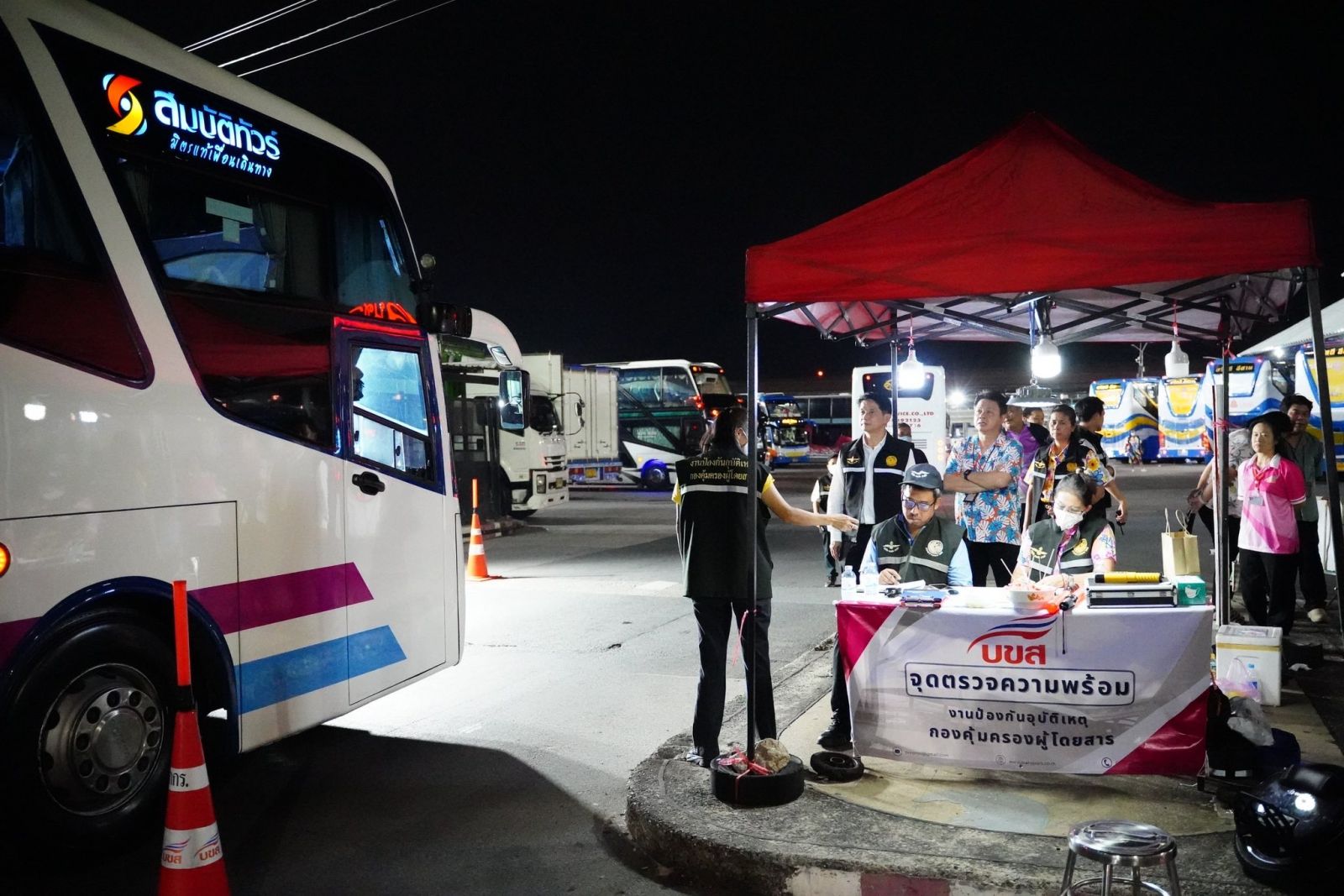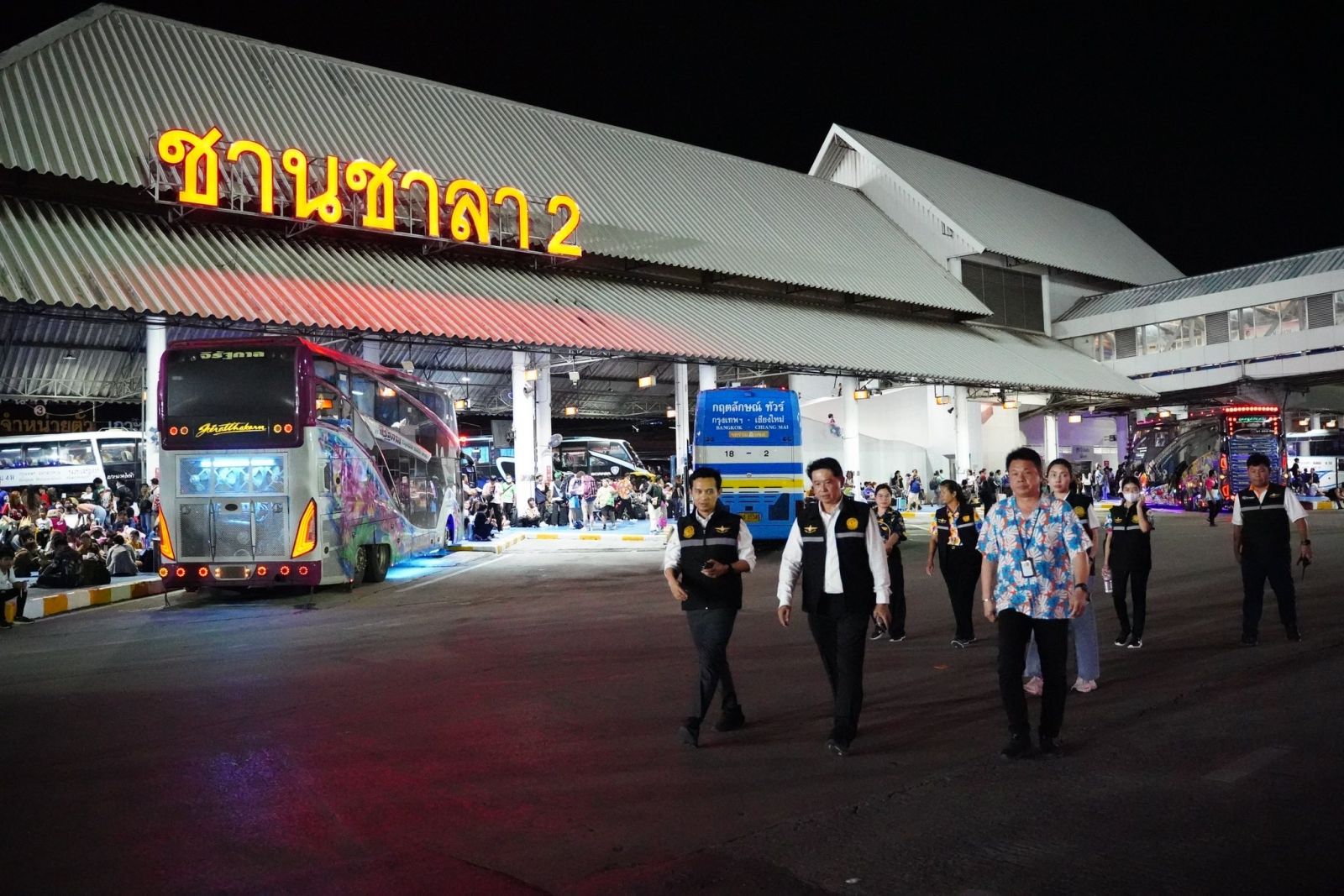 วันที่ 12 เม.ย.2568 เวลา 21.00 น. นายชัชวาล พรอมรธรรม กรรมการฯ รักษาการแทนกรรมการผู้จัดการใหญ่ บริษัท ขนส่ง จำกัด (บขส.) พร้อมด้วยนายสุธารักษ์ ธีร์จันทึก กรรมการบริษัทฯ และผู้บริหาร บขส. ลงพื้นที่ตรวจการอำนวยความสะดวกและให้บริการประชาชน ช่วงเทศกาลสงกรานต์ 2568 บริเวณจุดตรวจความพร้อมรถโดยสาร, ชานชาลาขาเข้า-ออก, จุดพักคอยผู้โดยสาร สถานีขนส่งผู้โดยสารกรุงเทพ (จตุจักร) หรือหมอชิต 2
