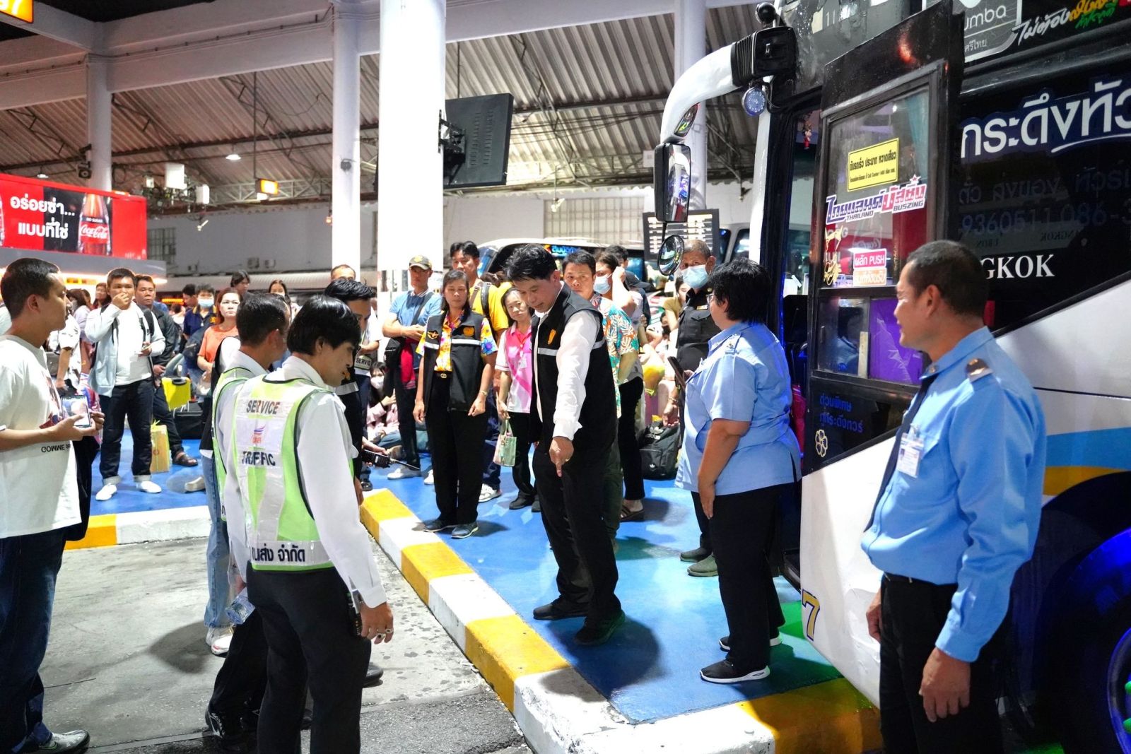 โดยบรรยากาศการเดินทางเป็นไปด้วยความเรียบร้อย ซึ่งข้อมูลการเดินทาง ณ เวลา 21.00 น. มีผู้โดยสารเดินทางออกจากกรุงเทพฯ เที่ยวไป จำนวน 94,321 คน ใช้รถโดยสาร (รถ บขส. , รถร่วม) จำนวน 4,322 เที่ยว