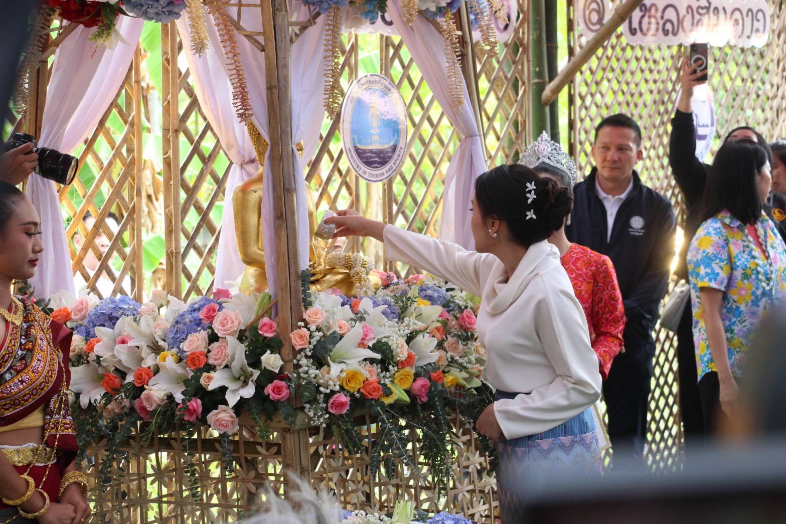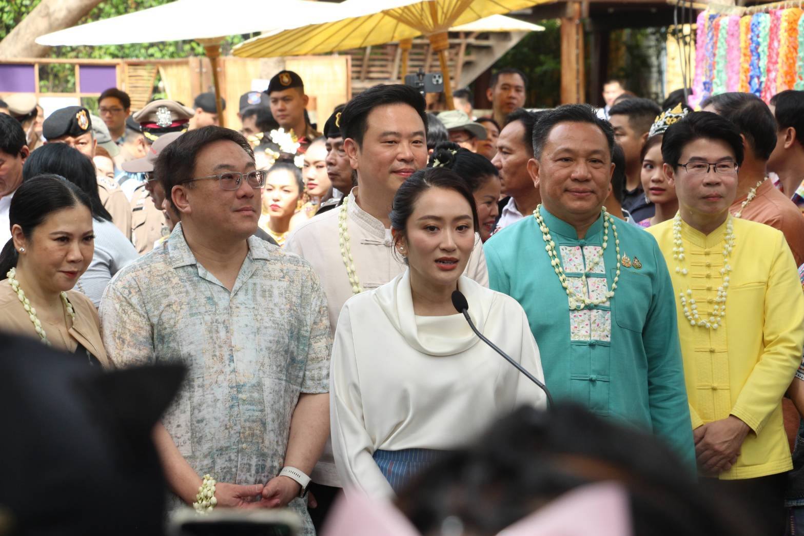 นางสาวแพทองธาร ชินวัตร นายกรัฐมนตรี ร่วมงาน “ป๋าเวณีปี๋ใหม่เมืองสันกำแพง” ณ ชุมชนโหล่งฮิมคาว จ.เชียงใหม่ เฉลิมฉลองประเพณีสงกรานต์และสืบสานวัฒนธรรมท้องถิ่นของชาวล้านนา ทั้งนี้ นายกฯ ได้ร่วมสรงน้ำศักดิ์สิทธิ์ในหม้อปูรณมฏะ แด่องค์หลวงพ่อสมปรารถนา และทำพิธีสระเกล้าดำหัวผู้สูงอายุ พร้อมเยี่ยมชมการจัดแสดงหัตถกรรมการเรียนรู้ 10 โหม้งโหล่งผะญ๋าภูมิปัญญาท้องถิ่น และสินค้า OTOP 5 ดาว