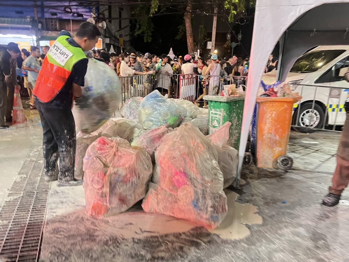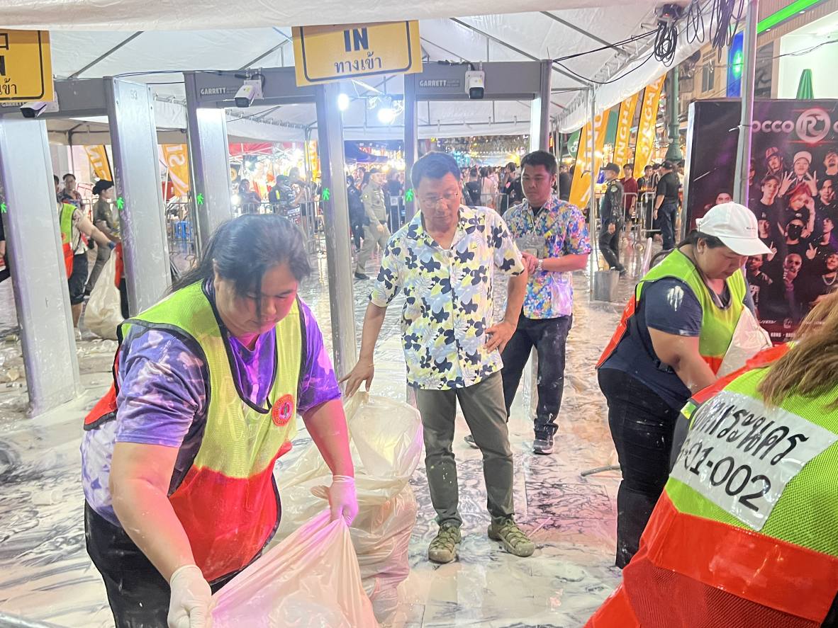 14 เม.ย.68 เวลา 22.00 น. นายโกศล สิงหนาท ผู้อำนวยการเขตพระนคร พร้อมคณะผู้บริหารเขต นำกำลังเจ้าหน้าที่เข้าทำความสะอาด จัดเก็บขยะ ถังแป้ง ฉีดล้างทำความสะอาดทางเท้าและผิวจราจร เพื่อคืนความสะอาดให้กับพื้นที่ เตรียมรองรับประชาชนเล่นน้ำสงกรานต์ ในวันที่ 15 เม.ย.68 อีกหนึ่งวัน ณ บริเวณถนนข้าวสารและพื้นที่โดยรอบ