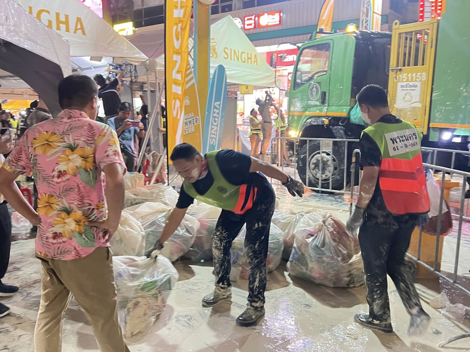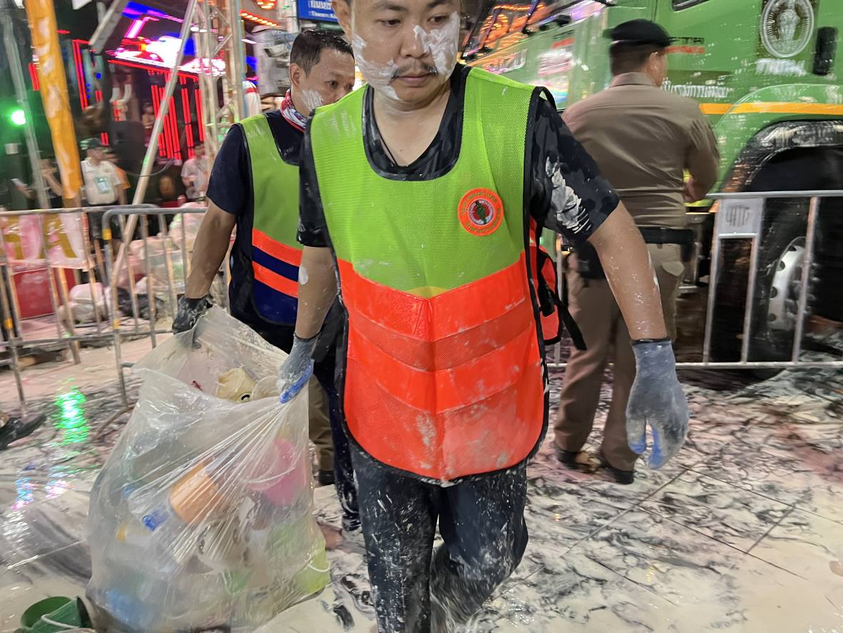ทั้งนี้ เจ้าหน้าที่ฝ่ายรักษาความสะอาดและสวนสาธารณะ ได้เข้าดำเนินการเก็บขยะ ถังแป้งดินสอพอง และล้างทำความสะอาดทางเท้า ผิวจราจร ตลอดถนนข้าวสาร เพื่อเคลียร์พื้นที่ และในวันพรุ่งนี้ (16 เม.ย.68) เวลา 07.00 น. จะได้จัดกิจกรรม Big Cleaning ล้างทำความสะอาดถนนข้าวสาร และพื้นที่โดยรอบอีกครั้ง เพื่อคืนพื้นที่ เตรียมรับประชาชนกลับมาทำงานและใช้ชีวิตตามปกติ