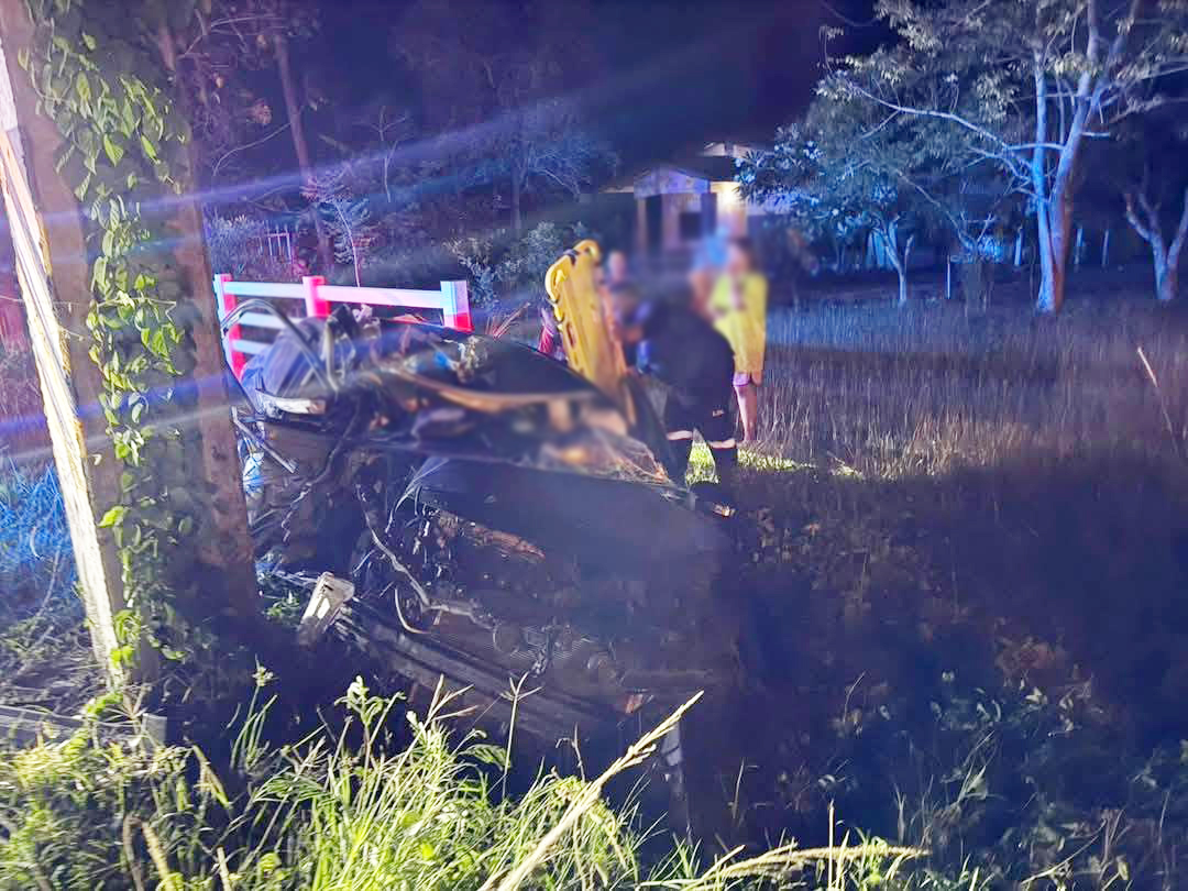 จ.นครศรีธรรมราช รถนั่งส่วนบุคคลเสียหลักชนเสาไฟฟ้าริมถนน สาวนั่งเบาะข้างดับ ส่วนหนุ่มคนขับไปเสียชีวิตที่ รพ.