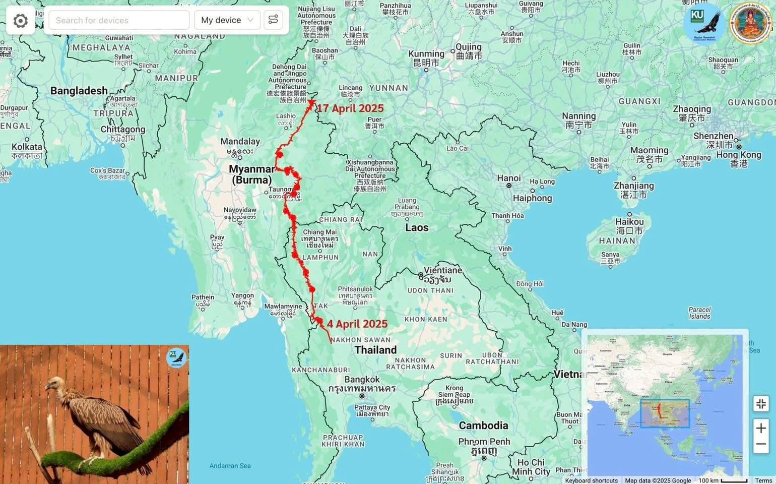 วันนี้ (18 เม.ย. 68) ทาง ผศ.น.สพ.ดร.ไชยยันต์ เกสรดอกบัว หัวหน้าหน่วยวิจัยนกนักล่าและเวชศาสตร์อนุรักษ์ คณะสัตวแพทยศาสตร์ มหาลัยเกษตรศาสตร์ ตัวแทนกองทุนวิจัยนกนักล่าเพื่อการอนุรักษ์ ได้เผยถึงผลการติดตามเส้นทางการบินของอีแร้งสีน้ำตาลหิมาลัย