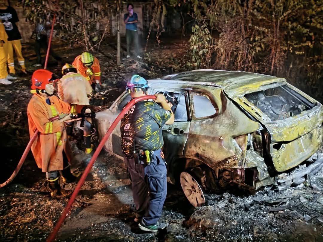 ไฟไหม้รถเก๋งยี่ห้อหรู เพลิงสงบพบร่างผู้เสียชีวิตติดค้างอยู่ภายในยานพาหนะ จ.อุบลราชธานี