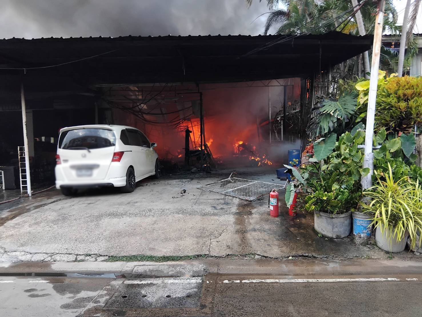 ไฟไหม้ร้านทำเบาะรถยนต์ กลางเทศบาลเมืองร้อยเอ็ด แล้วลุกลามบ้านเรือน, รถยนต์เสียหายวอด
