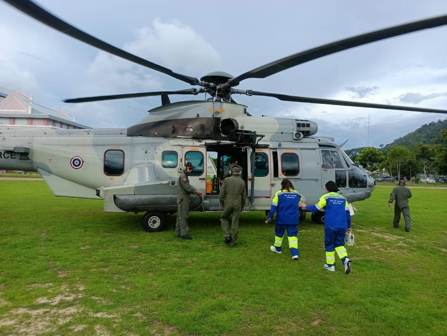 เมื่อวันที่ 20 เม.ย.68 ทางกองทัพอากาศ ได้ส่ง เฮลิคอปเตอร์แบบ EC-725 พร้แมทีมแพทย์ของกองทัพอากาศ เข้าช่วยเหลือประชาชน หลังได้รับแจ้งเหตุขอความช่วยเหลือ เคสผู้ป่วยฉุกเฉิน มีอาการน่าเป็นห่วง ซึ่งจำเป็นต้องได้รับการรักษาอย่างเร่งด่วนด้วยการใส่สายสวนขยายหลอดเลือด ด้วยความเร่งด่วน ทีมแพทย์ของกองทัพอากาศ ได้ประเมินแล้วเห็นว่า การลำเลียงผู้ป่วยทางอากาศเป็นวิธีที่รวดเร็วและปลอดภัยที่สุด จึงได้ประสานงานเพื่อนำส่งผู้ป่วยจาก กองบิน 7 (บน.7) ไปยังโรงพยาบาลกรุงเทพ-ภูเก็ต ซึ่งมีเครื่องมือและทีมแพทย์ผู้เชี่ยวชาญพร้อมให้การรักษา ภารกิจนี้ดำเนินการโดยหน่วยบิน 2037 ด้วยเฮลิคอปเตอร์แบบ EC-725 ซึ่งได้ทำการบินรับผู้ป่วยจาก บน.7 เพื่อนำส่งถึงสนามกีฬาราชภัฏภูเก็ตอย่างรวดเร็ว จากนั้นจึงบินกลับมายัง บน.7