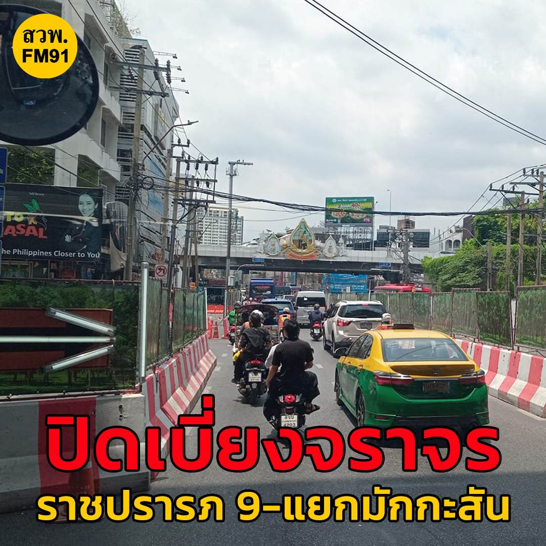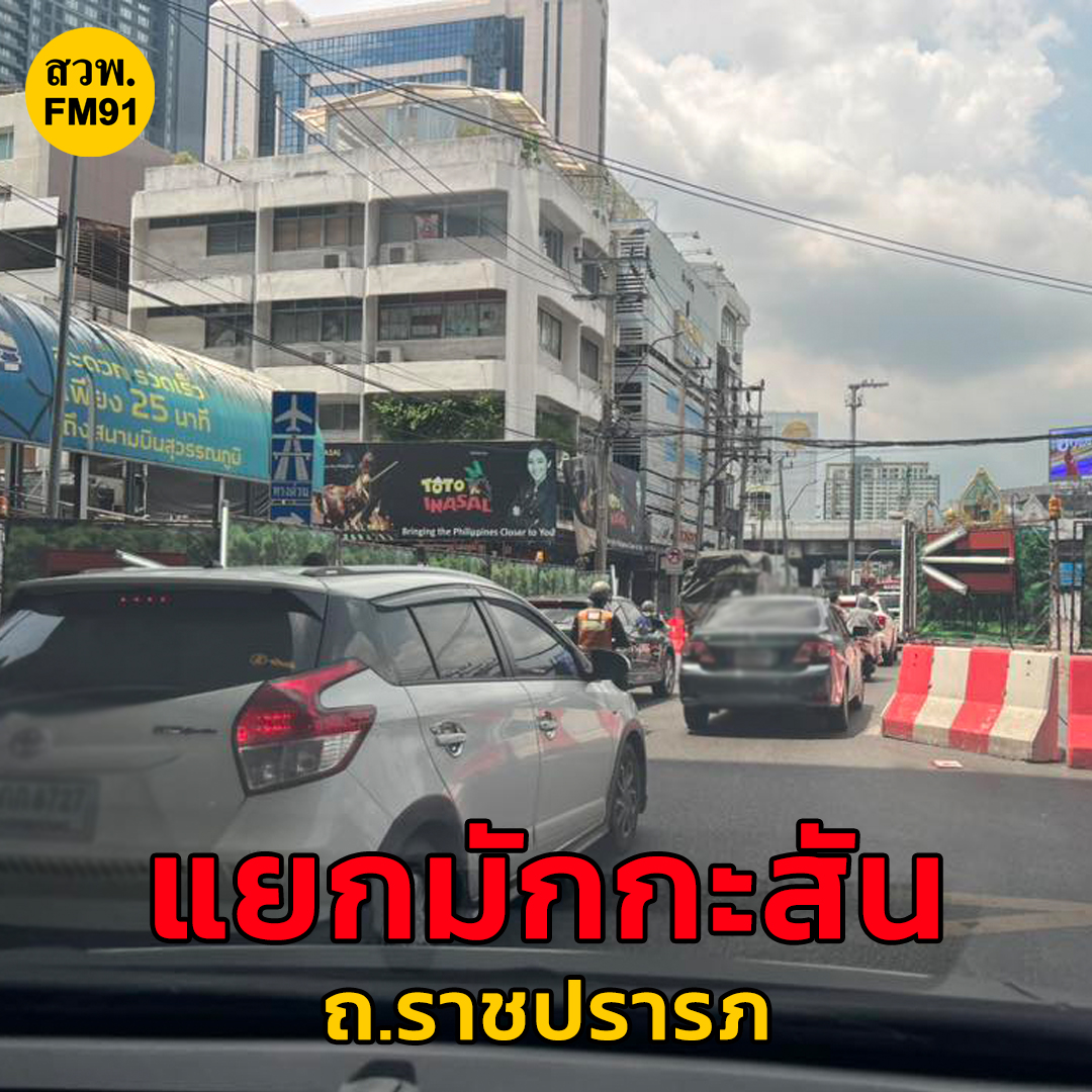 ถ.ราชปรารภ ขาออก ปากซอยราชปรารภ 9-แยกมักกะสัน ปิดเบี่ยงจราจร แนวก่อสร้างรถไฟฟ้า ผ่านได้ 3 ช่องทาง เต็มแยกประตูน้ำ ต่อเนื่องเข้าเส้นทางดังต่อไปนี้