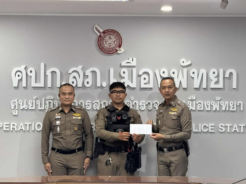 ผู้กำกับการ สภ.เมืองพัทยา มอบรางวัล เพื่อเป็นขวัญและกำลังใจแด่ ‘สายตรวจพัทยา ปีนระเบียงช่วยเด็ก 7 ขวบ’ จ.ชลบุรี