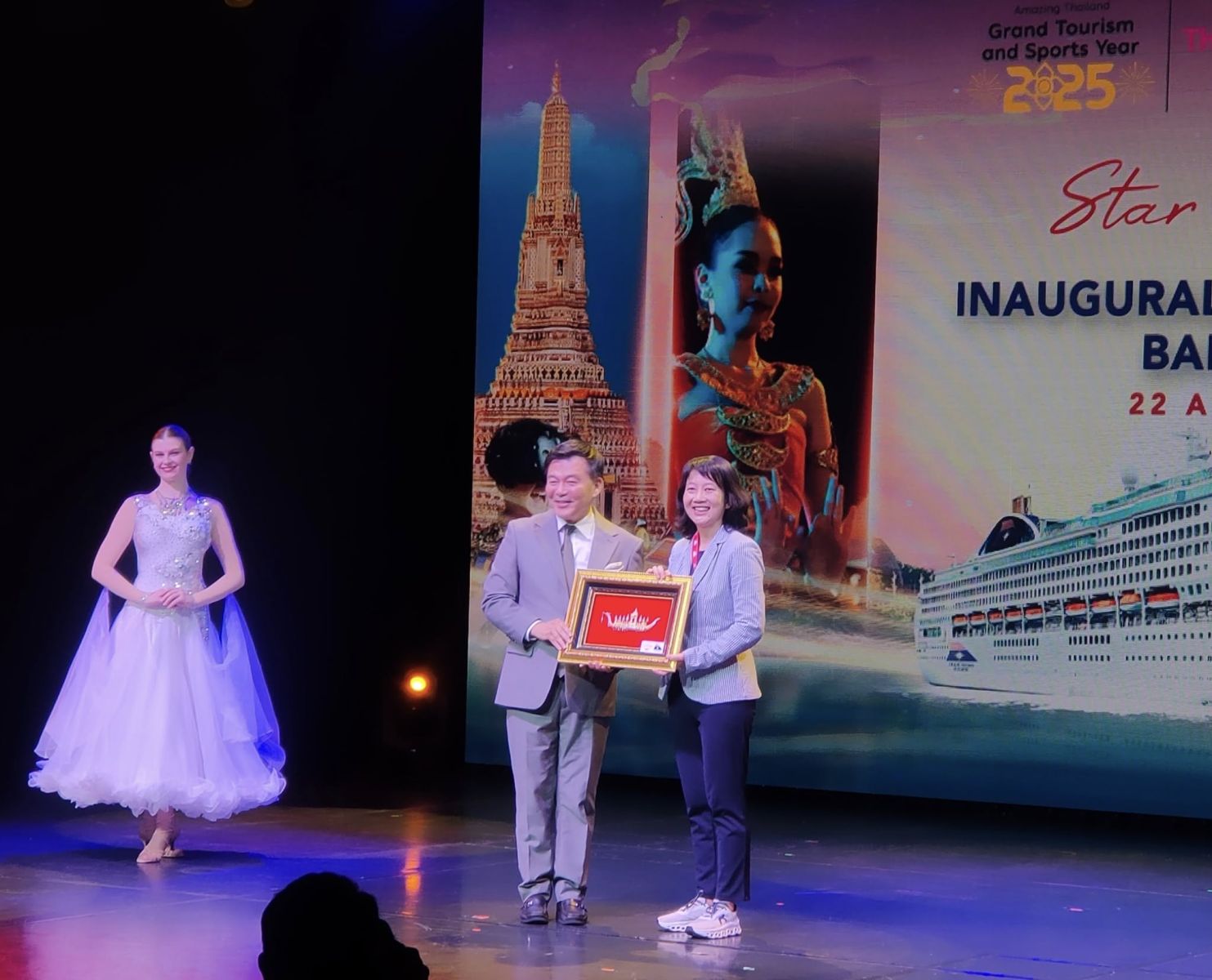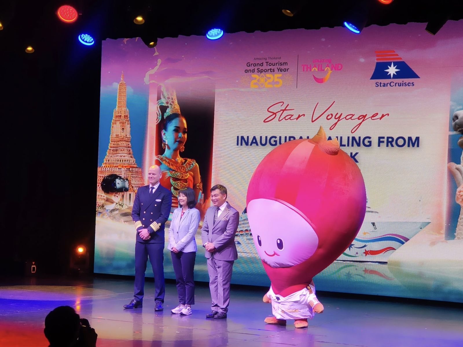 นางสาวภัทรอนงค์ ณ เชียงใหม่ รองผู้ว่าการการท่องเที่ยวแห่งประเทศไทย ด้านตลาดเอเชียและแปซิฟิกใต้ เปิดเผยว่า การที่แบรนด์เรือสำราญ StarDream Cruises ได้ตกลงนำเรือเข้ามาให้บริการขึ้นลงที่ประเทศไทยครั้งนี้ ถือเป็นก้าวสำคัญของความร่วมมือระหว่าง ททท. และผู้ประกอบการท่องเที่ยวเรือสำราญแบรนด์ระดับโลก ในการส่งเสริมอุตสาหกรรมการท่องเที่ยวเรือสำราญในประเทศไทย ตอบสนองนโยบายของรัฐบาล สะท้อนถึงการทำงานร่วมกันอย่างเหนียวแน่นของพันธมิตรทุกภาคส่วน เพื่อให้เกิดกิจกรรมต้อนรับนักท่องเที่ยวที่เข้าร่วมรับประสบการณ์พิเศษไปกับเรือ Star Voyager ในวันนี้ ซึ่งถือเป็นโอกาสอันดีในการที่จะนำเสนอศักยภาพของประเทศไทยในการเป็นอีกหนึ่งจุดหมายปลายทางสำคัญของนักท่องเที่ยวโดยเรือสำราญในภูมิภาค และสร้างความประทับใจให้นักท่องเที่ยวผ่านการนำเสนอเสน่ห์วัฒนธรรมไทย แหล่งท่องเที่ยวทางธรรมชาติที่สวยงาม และการต้อนรับด้วยอัธยาศัยไมตรีของคนไทย
