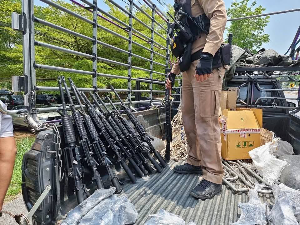 1. อาวุธปืนเล็กยาว ทรง AR ขนาด 5.56 มม. ไม่ปรากฎเลข/เครื่องหมายประจำปืน จำนวน 10 กระบอก