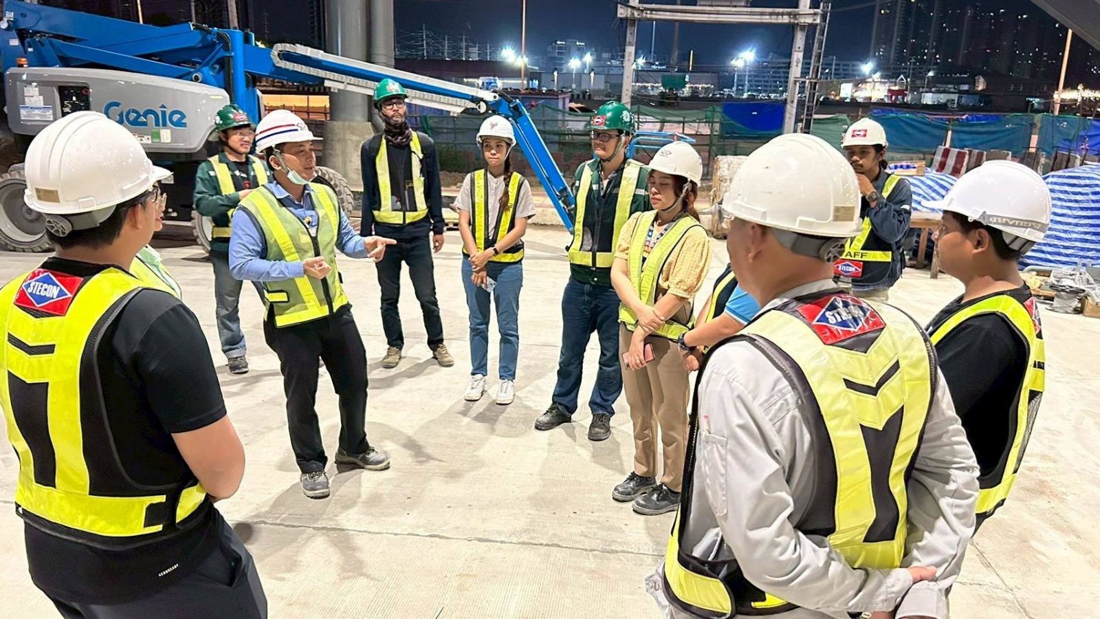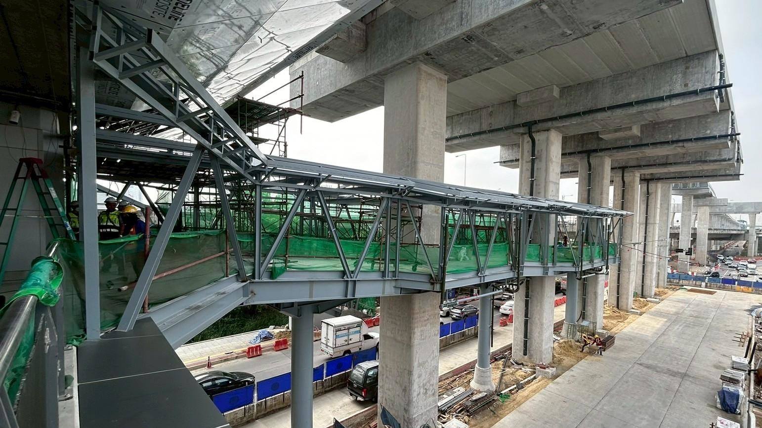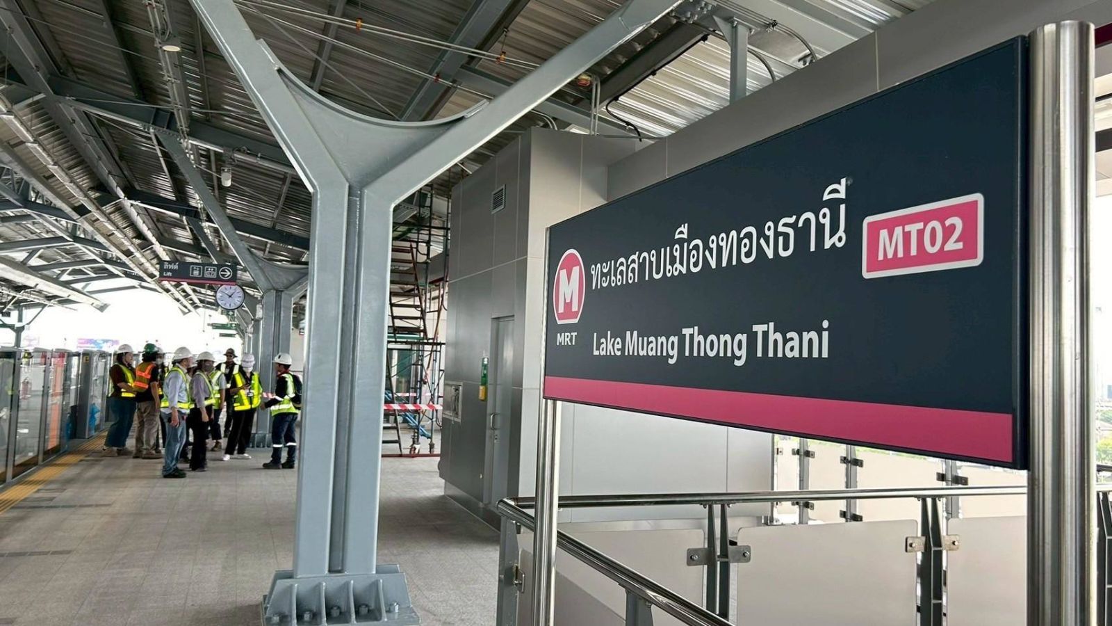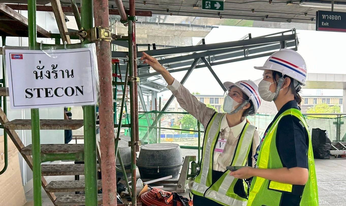 การรถไฟฟ้าขนส่งมวลชนแห่งประเทศไทย (รฟม.) โดยสำนักงานความปลอดภัย อาชีวอนามัยและสภาพแวดล้อมในการทำงาน (สปอ.) ลงพื้นที่ตรวจความปลอดภัยในการก่อสร้าง โครงการรถไฟฟ้าสายสีชมพู ส่วนต่อขยาย ช่วงสถานีศรีรัช – เมืองทองธานี บริเวณสถานีอิมแพ็คเมืองทองธานี (MT01) และสถานีทะเลสาบเมืองทองธานี (MT02) ทั้งช่วงเวลากลางวันและกลางคืน เพื่อตรวจสอบการปฏิบัติงานก่อสร้างให้เป็นไปตามมาตรการด้านความปลอดภัย อาทิ ตรวจสอบสภาพความแข็งแรงของราวกันตก Safety Net เพื่อป้องกันวัสดุตกหล่น ตลอดจนระบบไฟส่องสว่างตามแนวสายทาง ไฟสัญญาณเตือน ป้ายเตือนต่างๆ รวมทั้งผ้าใบคลุมวัสดุต่างๆ