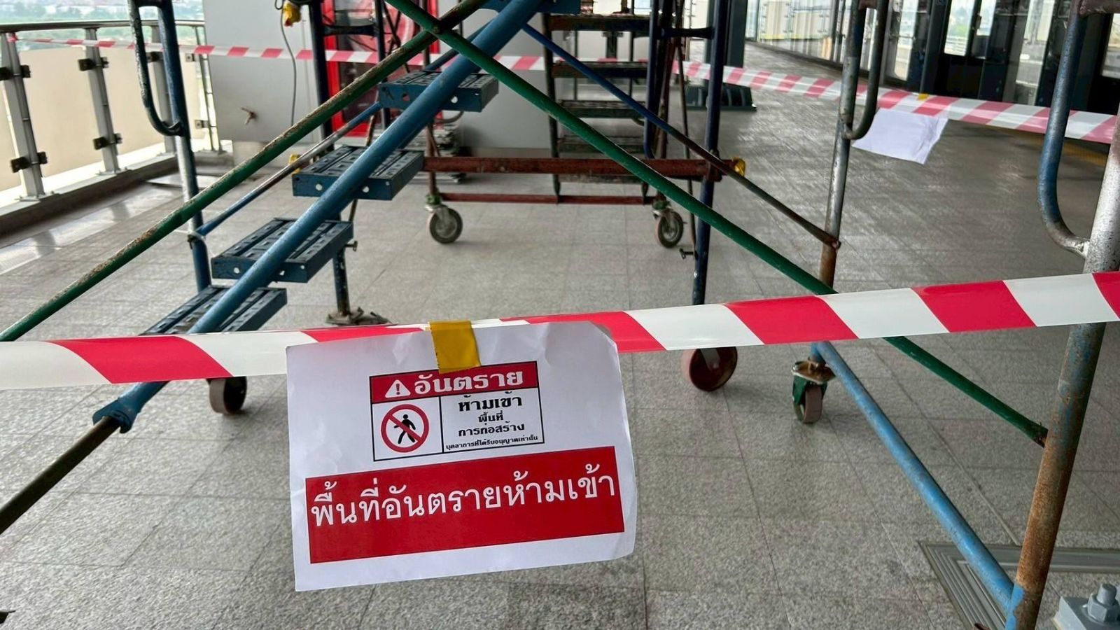 แผงผ้าใบแบริเออร์ เพื่อความปลอดภัยต่อผู้ปฏิบัติงานและประชาชนผู้ใช้เส้นทาง นอกจากนี้ ได้กำชับให้ผู้ปฏิบัติงานทุกคนสวมใส่อุปกรณ์คุ้มครองความปลอดภัยส่วนบุคคลตลอดระยะเวลาที่ปฏิบัติงาน และปฏิบัติตามมาตรฐานความปลอดภัยอย่างเคร่งครัด เพื่อให้การดำเนินงานก่อสร้างโครงการให้มีความปลอดภัยและสอดคล้องตาม “ปฏิญญาว่าด้วยความปลอดภัยในการก่อสร้างโครงการระบบรถไฟฟ้าขนส่งมวลชน Zero Accident”
