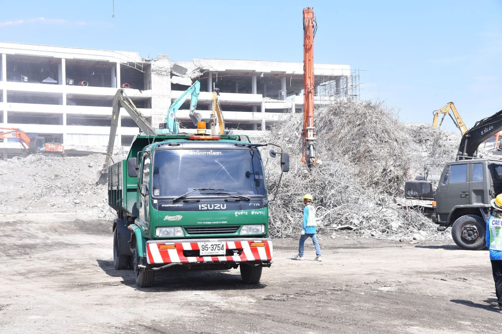 (23 เม.ย.68) นายสุริยชัย รวิวรรณ ผู้อำนวยการสำนักป้องกันและบรรเทาสาธารณภัย กรุงเทพมหานคร (สปภ.) แถลงข่าวความคืบหน้าเหตุการณ์อาคาร สตง. ถล่ม เขตจตุจักร ว่า ขณะนี้ความสูงของซากอาคารในโซน A และ D จากเดิม 9.78 เมตร ลดลงอยู่ที่ 9.35 เมตร ส่วนโซน B และ C ยอดซากอาคารที่สูงที่สุดอยู่ที่ 8.58 เมตร ลดลงเหลือ 7.41 เมตร ในภาพรวมความเฉลี่ยลดลงมา 1 เมตร ถ้ายังสามารถคงระดับนี้ไว้ได้ คาดว่าภายในสิ้นเดือนเมษายนนี้ จะถึงพื้นชั้นที่ 1 ในส่วนของการทำงานจะทำแผนของชั้นใต้ดิน มีการประชุมกับทางทีมงาน โดยเฉพาะฝ่ายช่าง ตัวอาคารมีความกว้างยาวอยู่ประมาณ 40 x 40 เมตร ตัวด้านข้างด้านซ้ายจะมีทางที่เชื่อมกันแล้วเรารื้อออก เอารถเครื่องจักรหนักเข้าไปทำงาน วางแผนก็คือใช้ใช้พื้นที่ตรงนี้ เอาปูนที่ทับถมกันอยู่ออก ก็จะมีที่ว่างสำหรับที่จะ ขุดด้านข้างของตัวทั้งใต้ดิน ก็จะทำให้การทำงานคล้าย ๆ กับที่เราทำงานกันอยู่ในปัจจุบันนี้ ระยะเวลาก็จะจบงานได้ภายในกำหนดไม่นานนัก การทำงานเราทำจากด้านบน มีการขุดเศษปูนออก แล้วตัดเหล็ก ที่ผ่านมาก็มีการลดระดับลงเรื่อย ๆ เพราะฉะนั้นความสูงก็จะลดลง ความหนาก็จะหายไป จะเหลือแค่ A4 กับ D1 ส่วน A1 A2 A3 ก็จะลดหายไปแล้ว