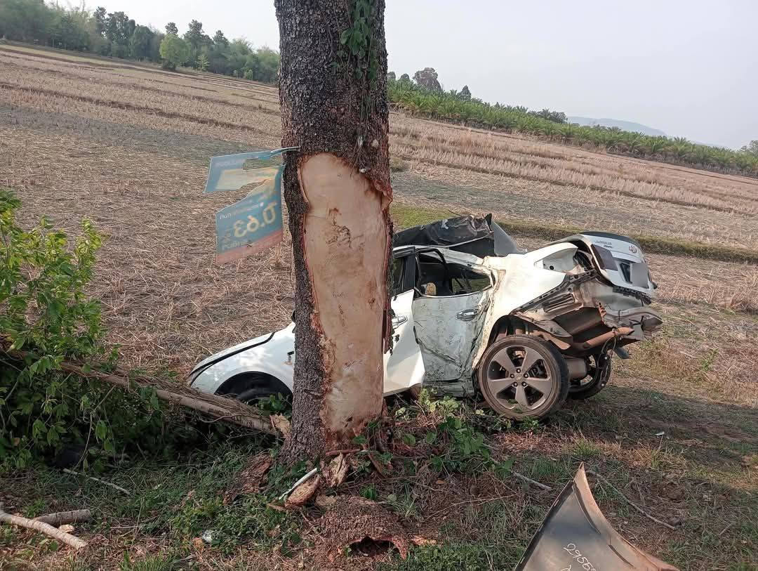 รถนั่งส่วนบุคคลเสียหลักฟาดกับต้นไม้ข้างทาง ริมถนนสายบ้านนาขาม - โพนงาม มีผู้เสียชีวิต จ.สกลนคร