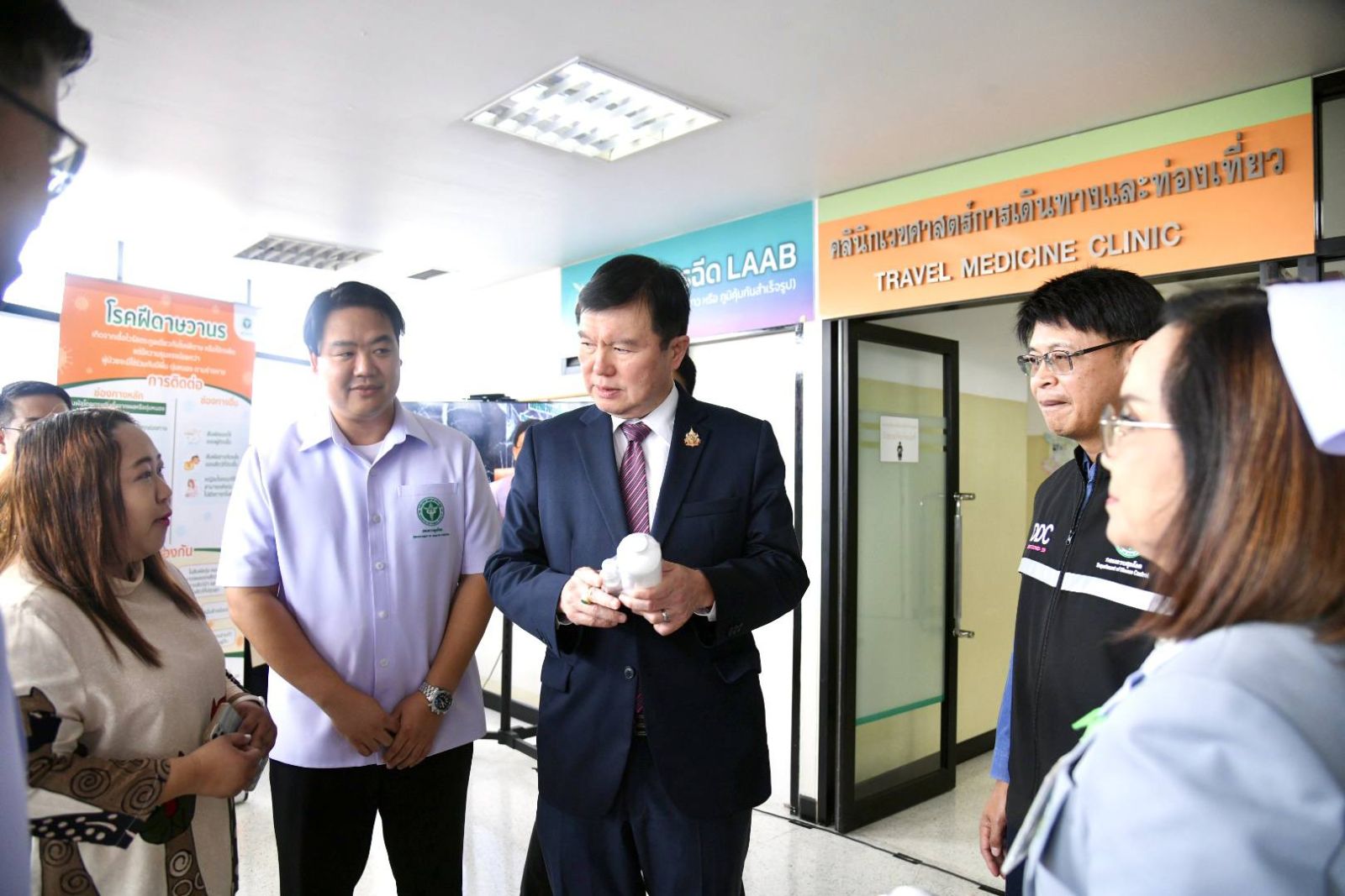 วันนี้ (24 เมษายน 2568) ณ สถาบันบำราศนราดูร จ.นนทบุรี นายแพทย์ภาณุมาศ ญาณเวทย์สกุล อธิบดีกรมควบคุมโรค พร้อมด้วย นายแพทย์นิติ เหตานุรักษ์ รองอธิบดีกรมควบคุมโรค ลงพื้นที่ตรวจเยี่ยม การฉีดวัคซีน Mpox หรือโรคฝีดาษวานร ให้กับบุคลากรทางการแพทย์และสาธารณสุข นับเป็นครั้งแรกในประเทศไทย โดยกรมควบคุมโรคได้รับการสนับสนุนวัคซีน Mpox ยี่ห้อ JYNNEOS ซึ่งเป็นผลิตภัณฑ์จากประเทศเดนมาร์ก จำนวน 2,220 ขวด เพื่อใช้ป้องกันโรคฝีดาษวานรมีประสิทธิภาพในการป้องกันได้ถึงร้อยละ 80 - 85