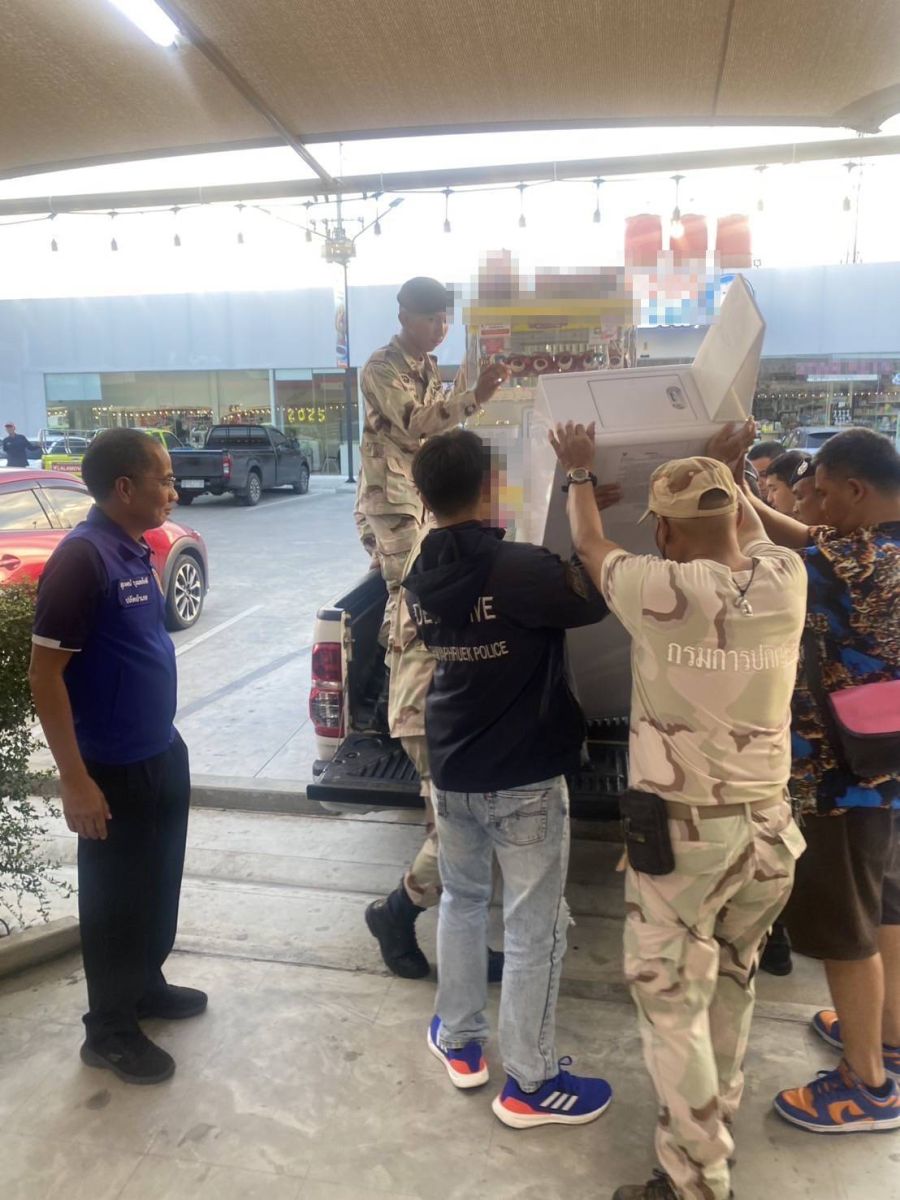 จากการตรวจสอบพบตู้คีบตุ๊กไฟฟ้า สีขาว ชนิดหยอดเหรียญ 10 หรือธนบัตร 20 50 100 จำนวน 2 ตู้ ที่บริเวณตลาดอาหารทะเล ในตลาดบางใหญ่ ซิตี้ และตู้คีบตุ๊กตาไฟฟ้า สีขาว ชนิดหยอดเหรียญ 10 หรือธนบัตร 20 50 100 จำนวน 2 ตู้ ที่บริเวณตลาดสด บางใหญ่ซิตี้ เบื้องต้นตู้คีบตุ๊กตาไฟฟ้าทั้ง 4 ตู้ ไม่พบผู้แสดงตนเป็นเจ้าของ และไม่สามารถพิสูจน์ผู้ครอบครองที่แท้จริงได้ จึงได้ทำการตรวจยึด นำส่งพนักงานสอบสวน สภ.บางใหญ่ เพื่อติดตามหาผู้ครอบครองที่แท้จริง หรือเพื่อเป็นพยานหลักฐานประกอบการสอบสวนเพื่อดำเนินคดีตามกฎหมาย