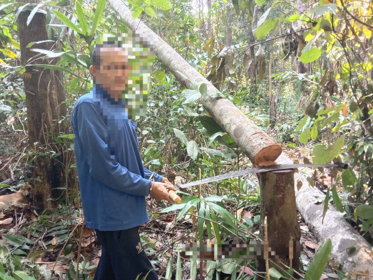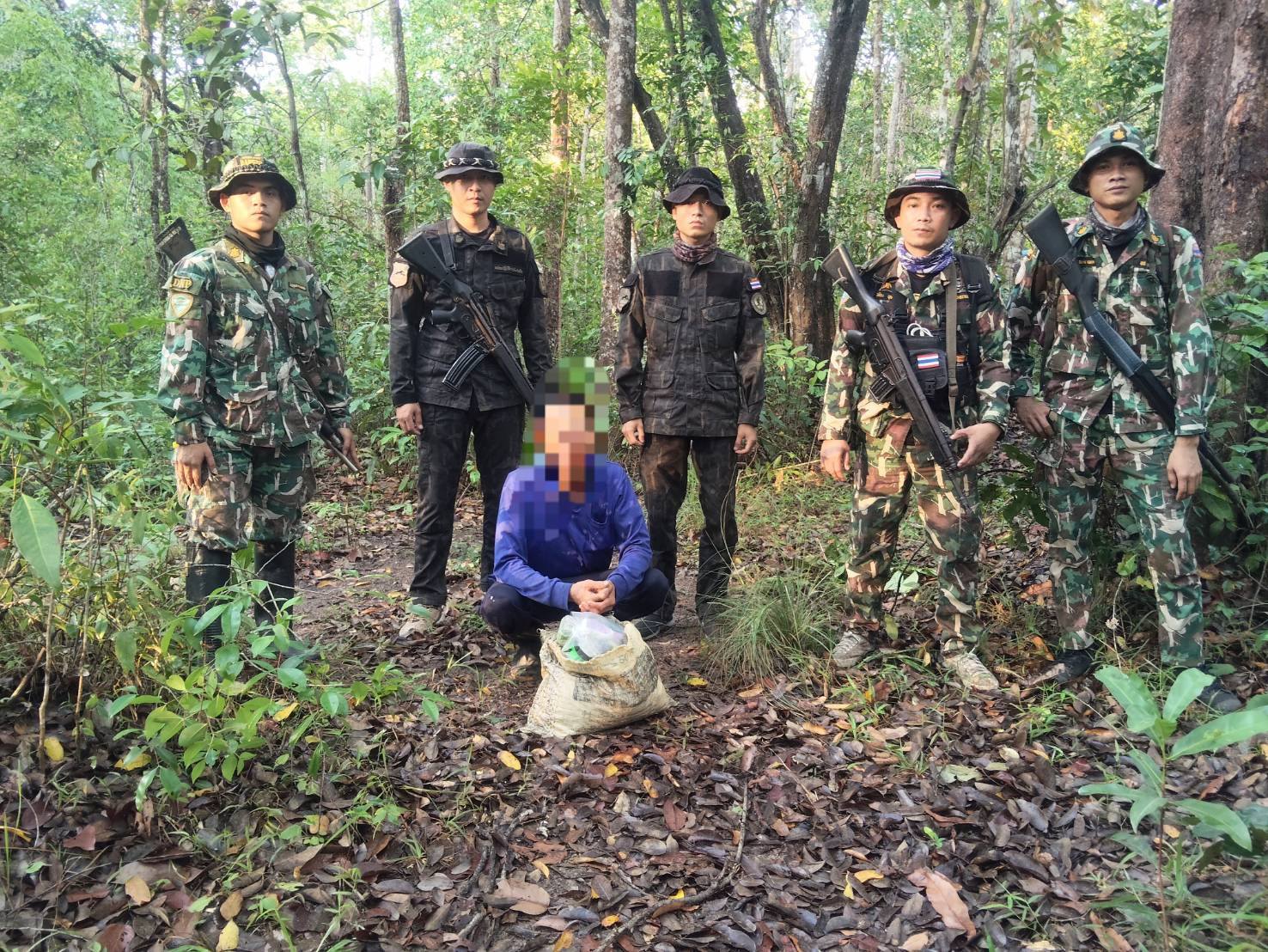 คณะเจ้าหน้าที่ได้ยินเสียงต้นไม้ล้มและเข้าซุ่มตรวจสอบจนพบชายหนึ่งคนกำลังนั่งเก็บของอยู่ในบริเวณดังกล่าว จึงแสดงตัวเข้าตรวจสอบและทราบว่า เป็นชาย อายุ 48 ปี เป็นราษฎรบ้านคำแสนสุข ตำบลห้วยข่า อำเภอบุณฑริก จังหวัดอุบลราชธานี จากการตรวจสอบพบของกลางเป็นไม้สำรอง จำนวน 2 ต้น/ท่อน ปริมาตรรวม 2.06 ลูกบาศก์เมตร พร้อมอุปกรณ์ในการกระทำผิด ได้แก่ เลื่อยตัด 1 ปื้น มีดปลายแหลม 1 เล่ม ไฟฉายชนิดคาดศีรษะ 1 ชุด กระสอบปุ๋ยสีขาว 1 ใบ และผลสำรอง 5 กิโลกรัม