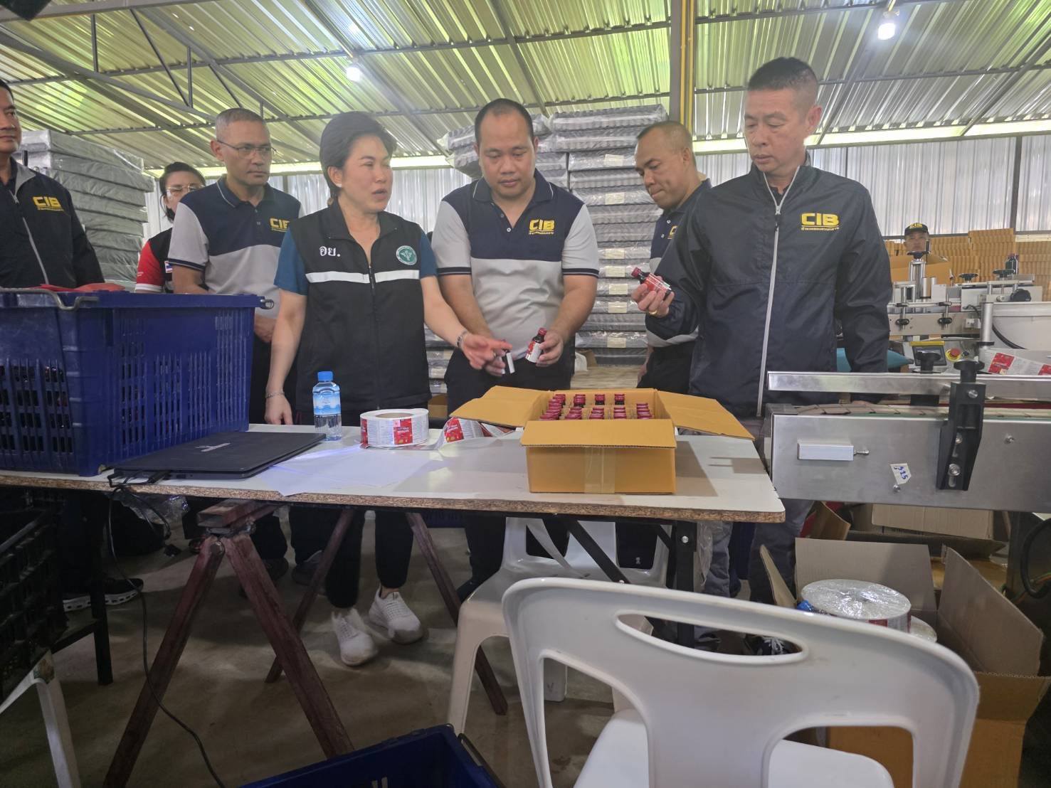 CIB ร่วม อย. บุกค้น 2 จุด ทลายเครือข่ายโรงงานเถื่อน ผลิตยาแก้ไอปลอม เตรียมส่งขายสาย“4x100” ยึดของกลางมูลค่ากว่า 20 ล้านบาท