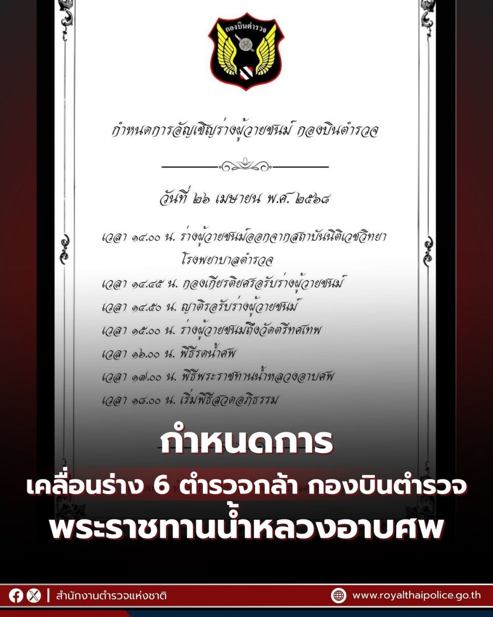 กำหนดการเคลื่อนร่าง 6 ตำรวจ กองบินตำรวจ ที่เสียชีวิตจากเหตุเครื่องบินตก