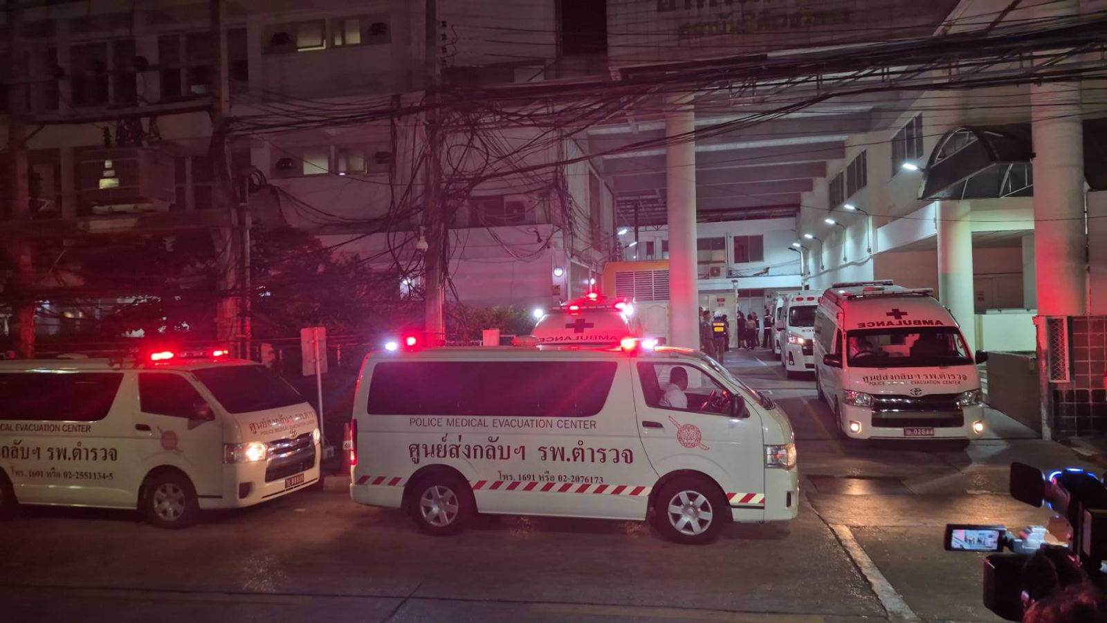วันที่ 25 เม.ย.68 บรรยากาศเคลื่อนร่างนักบิน วิศวกรอากาศยาน ช่างเครื่อง กองบินตำรวจทั้ง 6 นาย กรณีเหตุเครื่องบินของกองบินตำรวจตกในทะเล จากโรงพยาบาลหัวหิน มายังสถาบันนิติเวช โรงพยาบาลตำรวจ โดยมีรถนำขบวนรถตู้ 6 คัน พร้อมเจาหน้าที่ตำรวจพลร่ม บช.ตชด. ตั้งแถวทำความเคารพเพื่อเชิดชูเกียรติตำรวจกล้า
