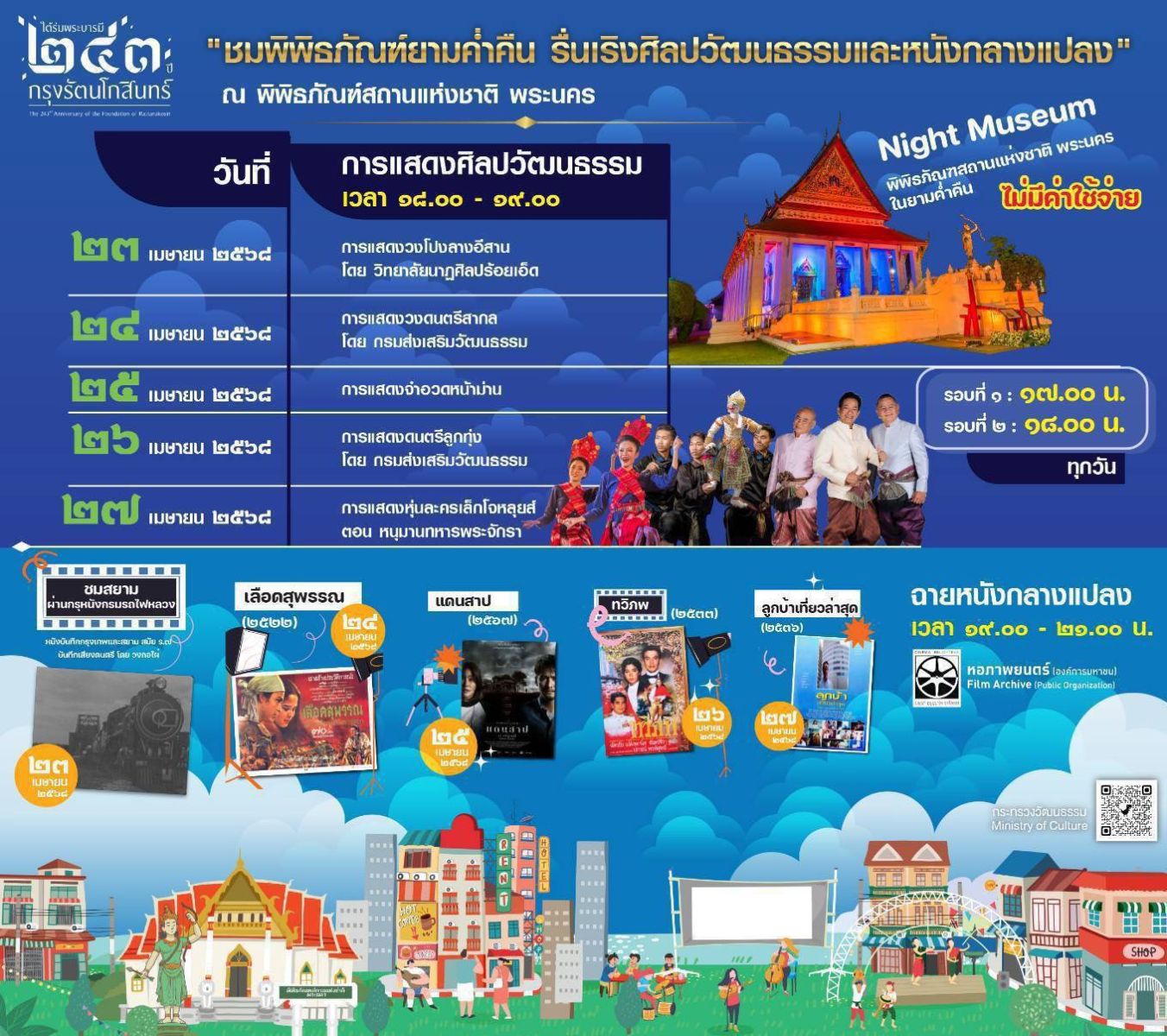 - ชมพิพิธภัณฑ์ยามค่ำคืน รื่นเริงศิลปวัฒนธรรมและหนังกลางแปลง"