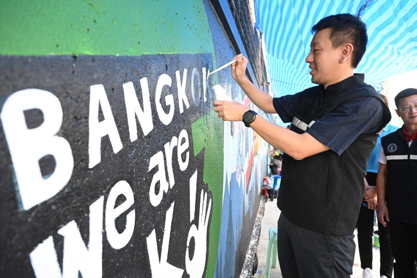 (27 เม.ย. 68) นายชัชชาติ สิทธิพันธุ์ ผู้ว่าราชการกรุงเทพมหานคร พร้อมด้วยนายศานนท์ หวังสร้างบุญ รองผู้ว่าราชการกรุงเทพมหานคร นายวิรัตน์ มนัสสนิทวงศ์ รองปลัดกรุงเทพมหานคร เยี่ยมชมให้กำลังใจ และร่วมสร้างสรรค์วาดภาพศิลปะบนกำแพง ร่วมกับนักเรียนโรงเรียนสังกัดกรุงเทพมหานคร ที่มาร่วมสร้างสรรค์ภาพศิลปะบนผนังกำแพงริมคลองเปรมประชากร บริเวณตรงข้ามโรงเรียนวัดเทวสุนทร เขตจตุจักร ภายใต้แนวคิด "DREAM OF THAILAND" เพื่อขับเคลื่อน Soft Power ตามนโยบายของรัฐบาล ซึ่งเป็นการนำเอาความรู้ด้านศิลปกรรมศาสตร์ และความคิดสร้างสรรค์ มาสร้างสรรค์เป็นผลงานศิลปะภาพวาดบนพื้นที่สาธารณะ