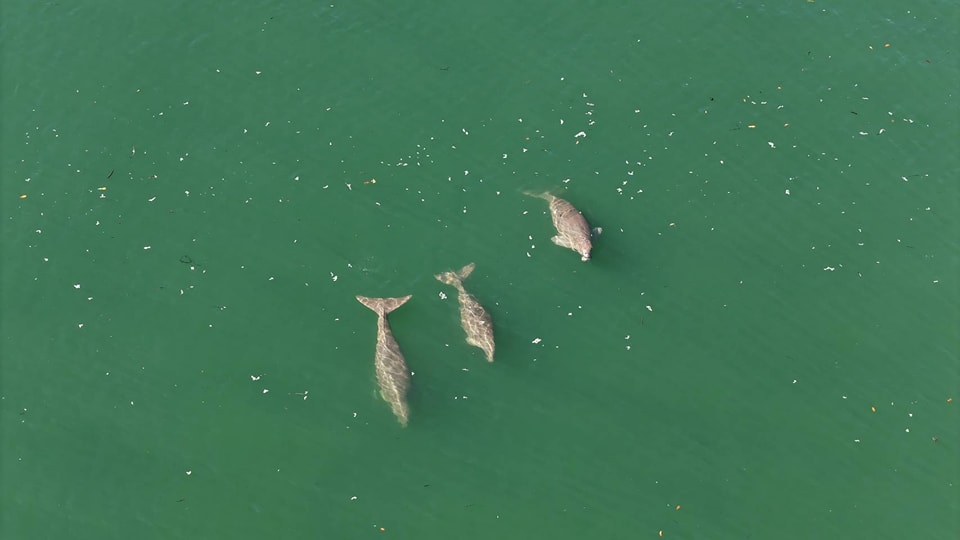ผลการบินสำรวจด้วยโดรนสร้างความตื่นตาตื่นใจให้กับทีมงานเป็นอย่างยิ่ง เมื่อสามารถบันทึกภาพฝูงพะยูนได้มากถึง 23 ตัว โดยในจำนวนนี้ พบคู่แม่ลูก 1 คู่ กำลังว่ายน้ำหากินอยู่ใกล้กันบริเวณเกาะลิบง แสดงให้เห็นถึงการขยายพันธุ์ตามธรรมชาติที่เกิดขึ้นในพื้นที่