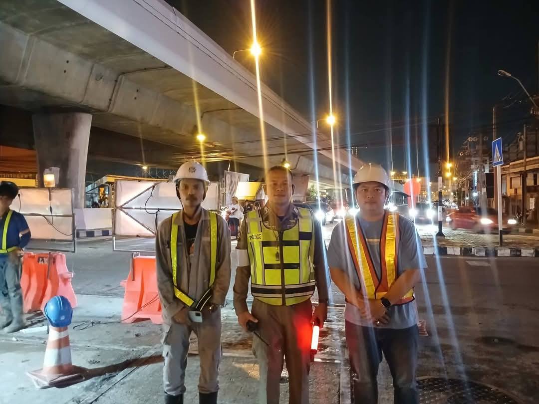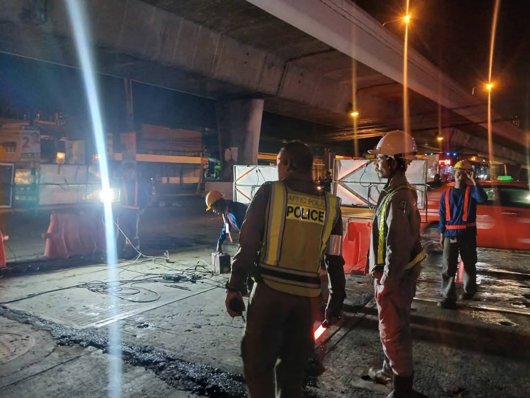 งานจราจร สภ.เมืองนนทบุรี พร้อมผู้เกี่ยวข้องร่วมตรวจสอบ เหตุถนนทรุดตัว แยกสะพานพระราม 5 สามารถเปิดการจราจรได้ปกติ