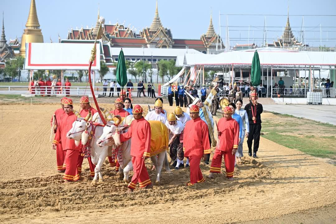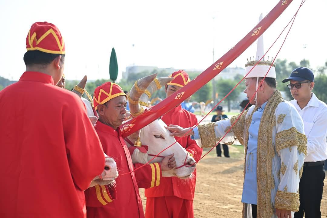ทั้งนี้ พระโคแรกนาขวัญ 1 คู่ ได้แก่ พระโคพอ พระโคเพียง และพระโคสำรอง ได้แก่ พระโคเพิ่ม พระโคพูล ประจำปีพุทธศักราช 2568 เป็นโคพันธุ์ขาวลำพูน มีสีผิวขาวอมชมพู ขนสีขาวสะอาด ทั้งลำตัวไม่มีจุดด่างดำ หรือสีอื่นบนลำตัว เขามีสีขาว ลำตัวเป็นลำเทียน เขาทั้งสองข้างมีลักษณะโค้งสวยงาม ดวงตาแจ่มใสสีน้ำตาลอ่อน ขนตาสีชมพู บริเวณจมูกขาว กีบสีขาว ขนหางเป็นพวงสีขาวยาว ลำตัวช่วงขาหลังและกีบมีความสมบูรณ์แข็งแรง เวลายืนและเดินสง่า
