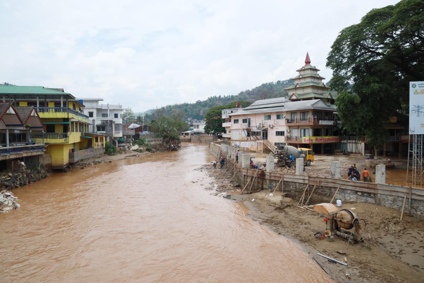 นายภาสกร เปิดเผยว่า ปริมาณฝนที่ตกในเมียนมาอยู่ที่ประมาณ 60 มิลลิเมตร ไม่มากนัก แต่ด้วยลำน้ำยังไม่ได้รับการขุดลอก โดยเฉพาะฝั่งเมียนมา จึงเกิดการล้นทะลัก ขณะนี้ฝ่ายไทยได้เริ่มขุดลอกแม่น้ำรวกแล้ว โดยกองทัพภาคที่ 3 คาดว่าจะแล้วเสร็จภายในวันที่ 20 มิถุนายน ส่วนการขุดลอกแม่น้ำสายฝั่งเมียนมายังไม่ได้ดำเนินการ และได้มีการประสานให้เร่งรัดผ่านทางผู้ว่าราชการท่าขี้เหล็กแล้ว