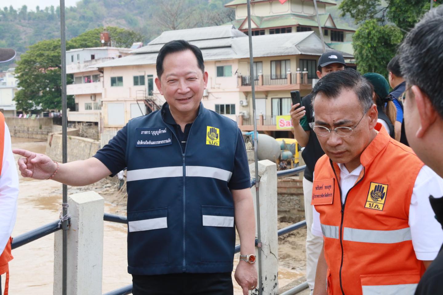 วันที่ 30 เมษายน 2568 นายภาสกร บุญลักษม์ อธิบดีกรมป้องกันและบรรเทาสาธารณภัย พร้อมด้วย นายชรินทร์ ทองสุข ผู้ว่าราชการจังหวัดเชียงราย นายวรายุทธ ค่อมบุญ นายอำเภอแม่สาย และหน่วยงานที่เกี่ยวข้อง ลงพื้นที่ติดตามสถานการณ์น้ำท่วมในพื้นที่ตลาดสายลมจอย และสะพานมิตรภาพไทย-เมียนมา แห่งที่ 1 หลังเกิดฝนตกหนักในพื้นที่ฝั่งเมียนมา ส่งผลให้น้ำเอ่อล้นแม่น้ำสายเข้าท่วมพื้นที่เมื่อวันที่ 29 เมษายนที่ผ่านมา