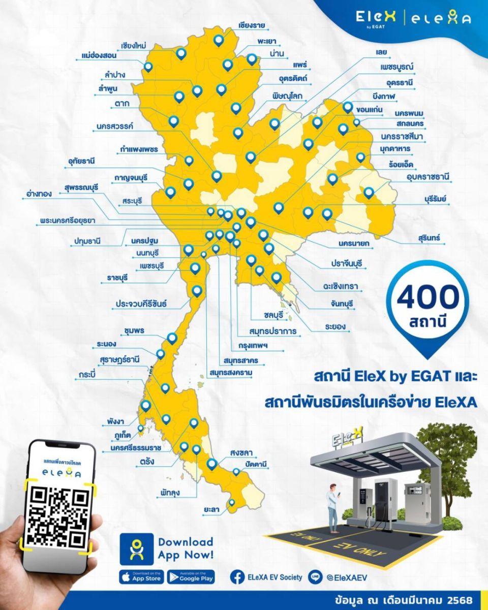 นอกจากนั้นแล้ว กฟผ. ได้เร่งขยายการให้บริการสถานีชาร์จ EleX by EGAT และสถานีพันธมิตรในเครือข่าย EleXA แล้ว 413 แห่งทั่วประเทศ โดยในปี 2568 ตั้งเป้าขยายสถานีให้ได้รวม 520 แห่ง รวมถึงเตรียมพบกับแคมเปญฉลองความสำเร็จ 30 ปี ฉลากประหยัดไฟฟ้าเบอร์ 5 พร้อมกับเปิดตัวฉลากประสิทธิภาพพลังงานของประเทศไทยโฉมใหม่ ซึ่ง กฟผ. ร่วมบูรณาการกับกรมพัฒนาพลังงานทดแทนและอนุรักษ์พลังงาน เพื่อส่งเสริมการจัดการใช้พลังงานของภาคประชาชนให้เกิดประสิทธิภาพสูงสุดและลดคาร์บอนอย่างเป็นรูปธรรมตามเป้าหมายความเป็นกลางทางคาร์บอนของประเทศ
