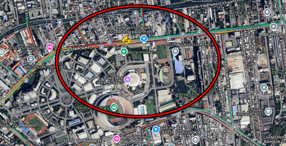 เวลา 23.20 น. วันที่ 2 พฤษภาคม 2568 ถนนรามคำแหง และพื้นที่โดยรอบ กกท. ตอนนี้รถติด