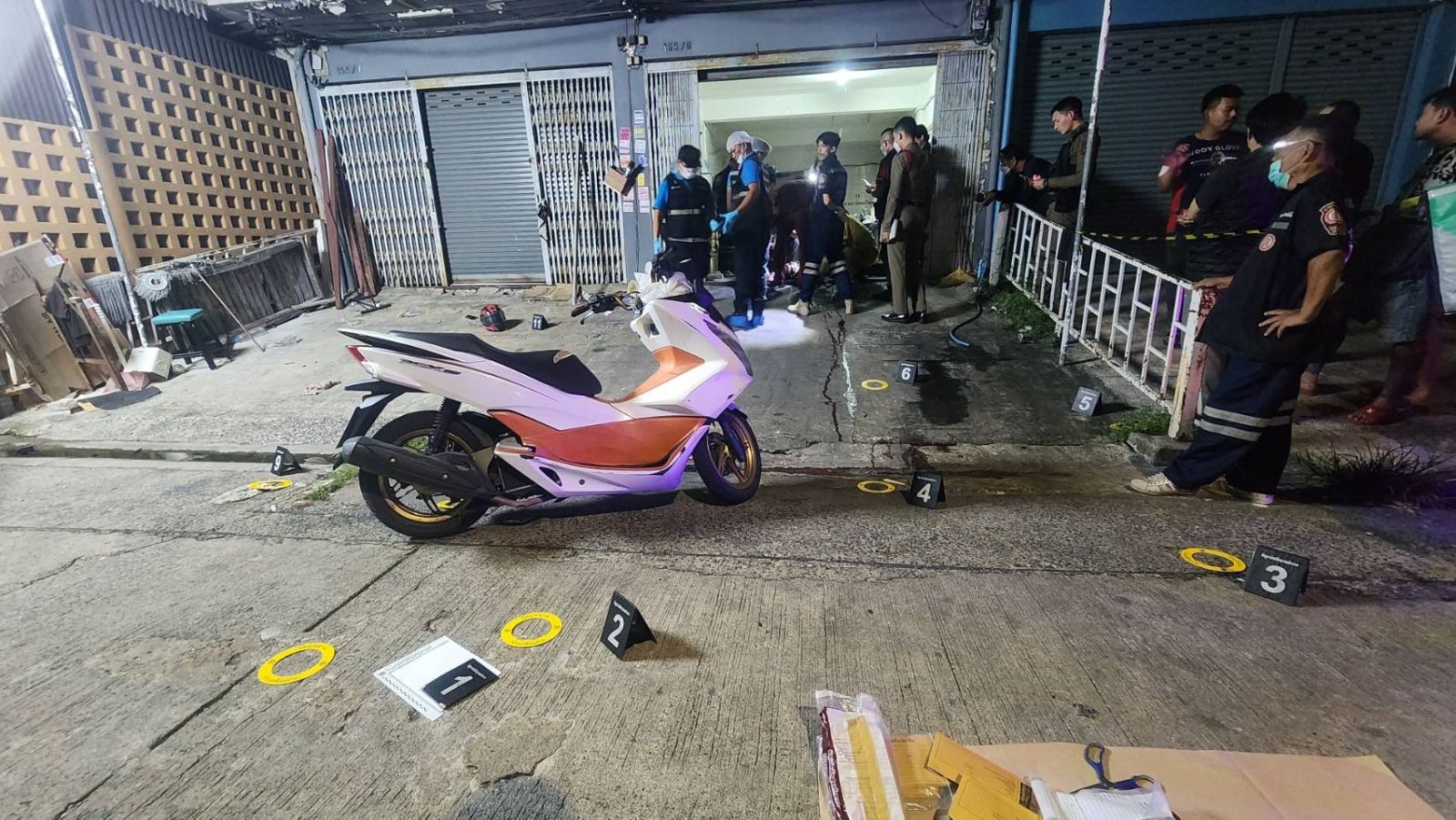 ที่เกิดเหตุเข้าจากถนนนวลจันทร์มาประมาณ 100 เมตร ลักษณะเป็นตึกแถว ให้เช่า สูง 4 ชั้นปลูกติดกัน บริเวณเข้าที่พักพบศพ ชาย อายุ 34 ปี แต่งกายใส่กางเกงขายาวสีดำ เสื้อสีเทา ถูกยิงเข้าที่ลำตัว และศีรษะ จำนวนหลายนัด และในที่เกิดเหตุ พบปลอกกระสุน 10-15 นัด ตกอยู่ อาวุปืนที่ใช้ก่อนยังไม่ทราบขนาด