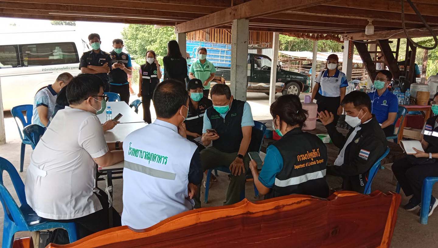 จากการสอบถามชาวบ้านโคกสว่าง เล่าว่า บริเวณสวนยางพาราได้ชำแหละวัว เมื่อวันที่ 12 เมษายน และจุดชำแหละหมู วันที่ 19 เมษายน ซึ่งมีผู้เสียชีวิตมาร่วมชำแหละด้วย ต่อมาวันที่ 28 เมษายน 68 ได้มีวัวอายุ 4 ปี ตายภายในคอกโดยไม่ทราบสาเหตุ จากนั้นจึงได้ชำแหละวัวเพื่อจะแบ่งกัน แต่ไม่ทันได้แบ่งกันผู้ใหญ่บ้านได้บอกให้นำเนื้อวัวที่แบ่งกันไปทำการฝั่งกลบ