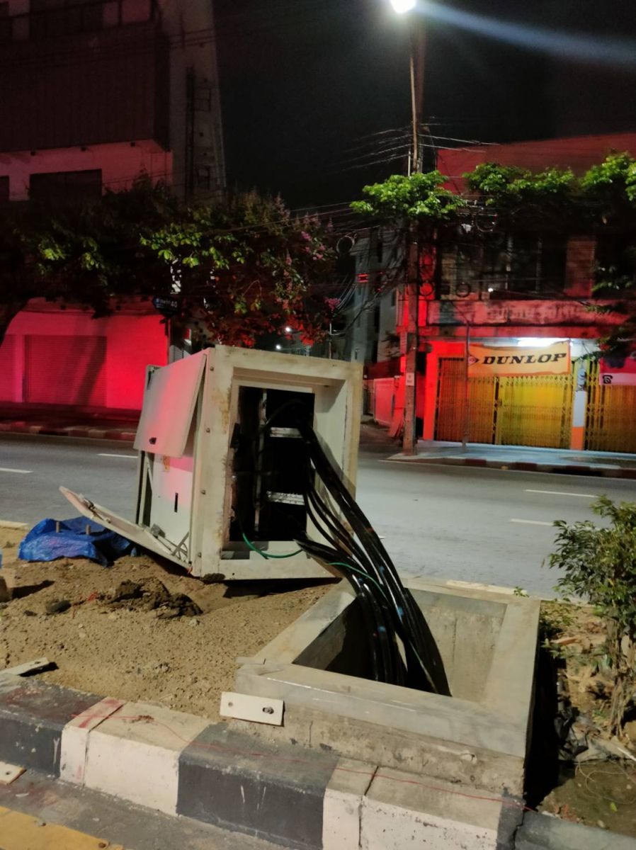 รถบรรทุก 4 ล้อเล็กเสียหลักขึ้นเกาะกลางชนตู้สัญญาณ แล้วรถพลิกตะแคง ช่วงหน้าซอยลาดพร้าว 29