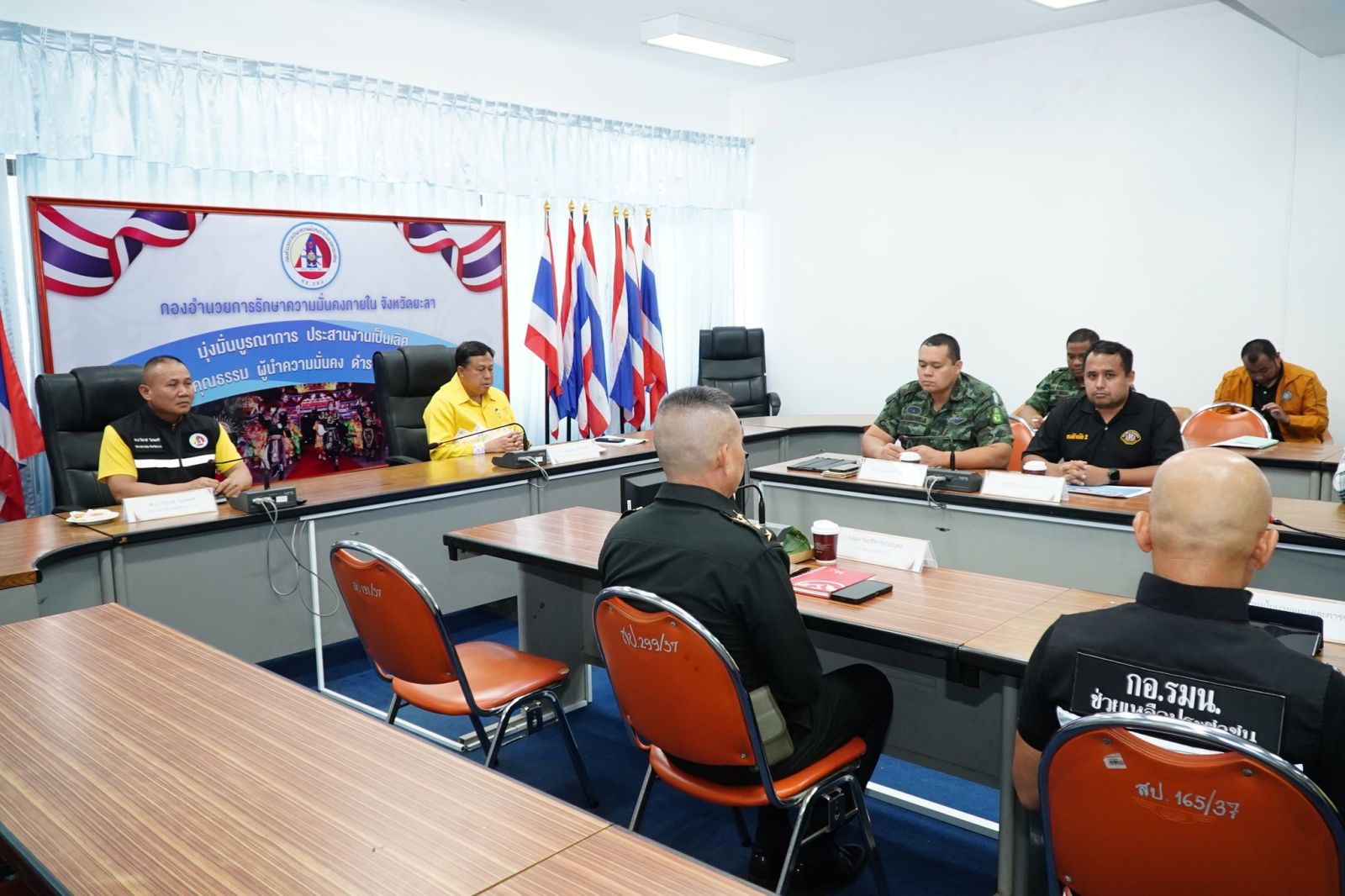 วันนี้ 7 พ.ค.68 เวลา 09.00 น. นายมูฮัมมัด ศานติภิมุข รองผู้ว่าราชการจังหวัดยะลา (ฝ่ายความมั่นคง) ประธานการประชุมเจ้าหน้าที่หน่วยงานความมั่นคง ทหาร ตำรวจ ฝ่ายปกครอง ติดตามสถานการณ์ในพื้นที่ ปฏิบัติการด้านการข่าว และแนวโน้มสถานการณ์ในพื้นที่จังหวัดยะลา ที่ห้องประชุม war room กองอำนวยการรักษาความมั่นคงภายในจังหวัดยะลา อาคาร 2 ศาลากลางจังหวัดยะลา โดยมี พ.อ.วิธเวช วิเศษศรี รอง ผอ.รมน.จังหวัดยะลา เจ้าหน้าที่หน่วยงานด้านความมั่นคง ตำรวจ ทหาร ฝ่ายปกครอง เข้าร่วม