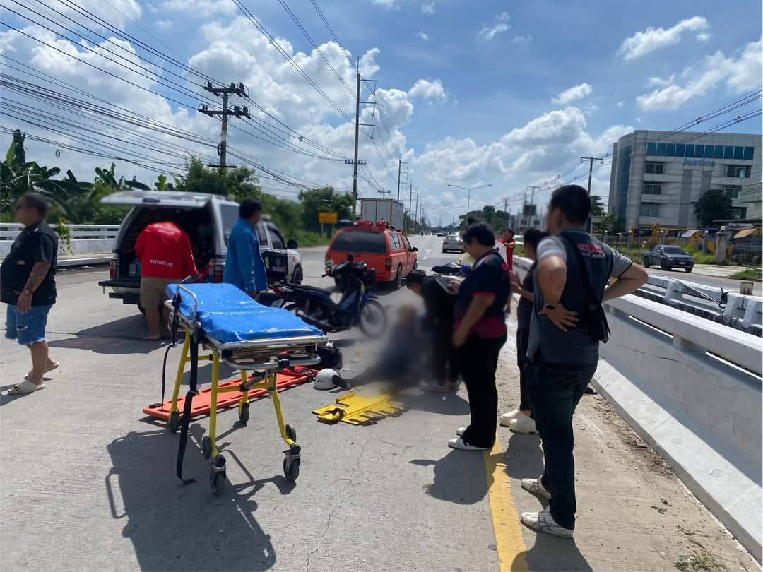 จ.ชลบุรี รถกระบะเฉี่ยวชนรถจักรยานยนต์แล้วทับซ้ำ คุณตาดับกลางถนน คุณยายไปเสียชีวิตที่ รพ.