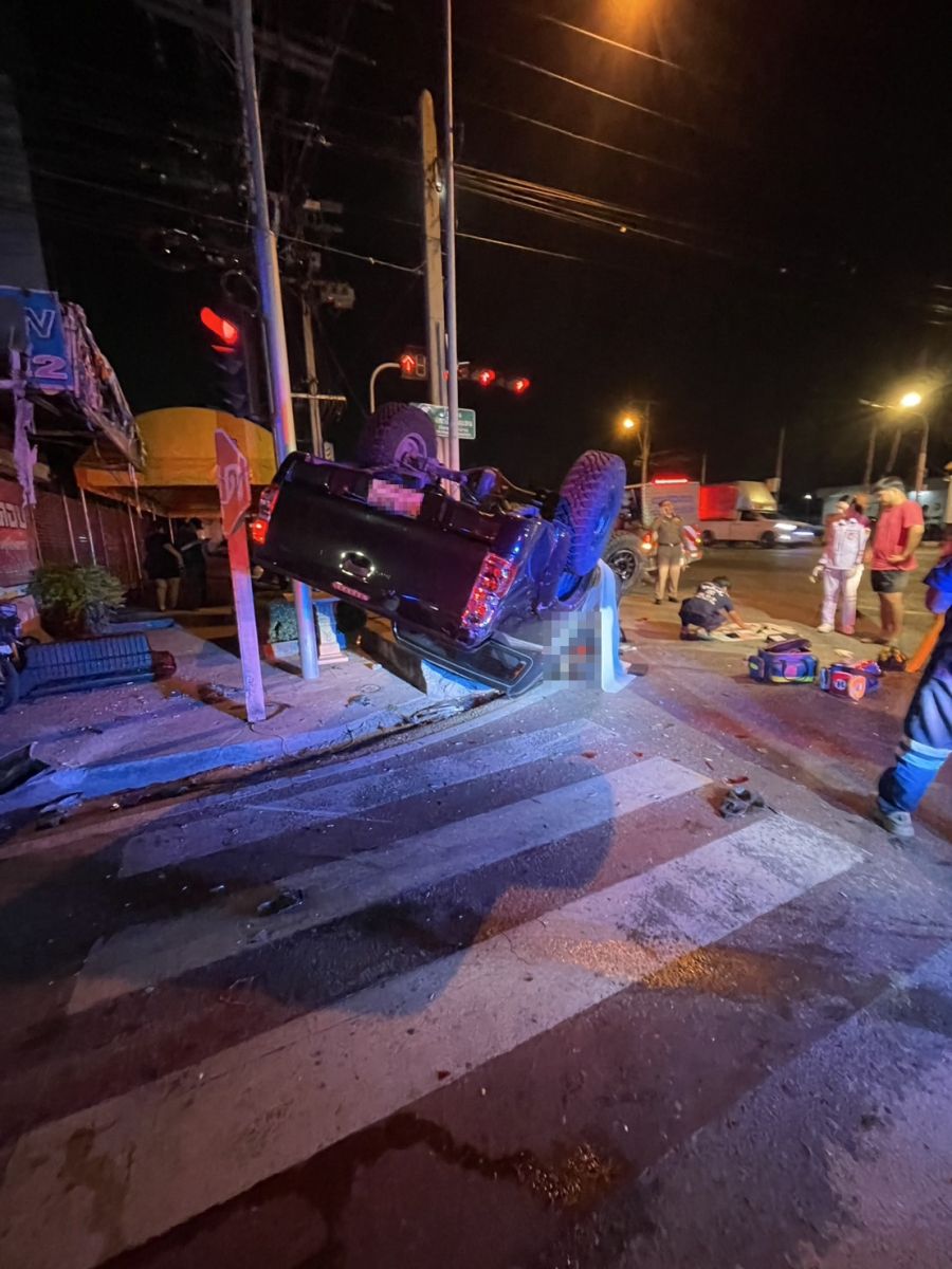 รถอเนกประสงค์ชนกับรถกระบะ กลางแยกบางบอน 5 มีผู้บาดเจ็บ 2 รายและเสียชีวิตในซากรถ 1 ราย