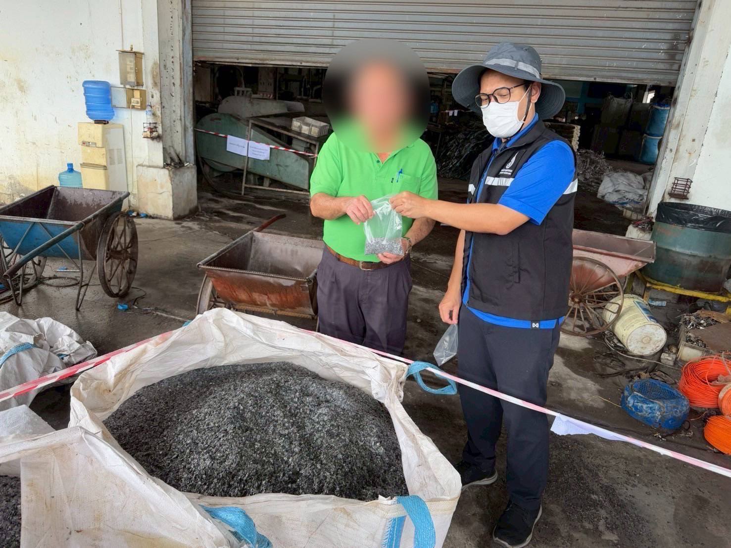 3. ประกอบกิจการโรงงานเข้าข่ายโรงงานประเภท106 โดยตรวจพบการบดย่อยและร่อนแยกสิ่งปฏิกูลหรือวัสดุที่ไม่ใช้แล้วภายในพื้นที่อาคารโรงงาน เพื่อนำโลหะกลับมาใช้ใหม่ เป็นการประกอบกิจการโดยไม่ได้รับอนุญาต โดยตรวจพบการใช้กำลังเครื่องจักร 536.12 แรงม้า