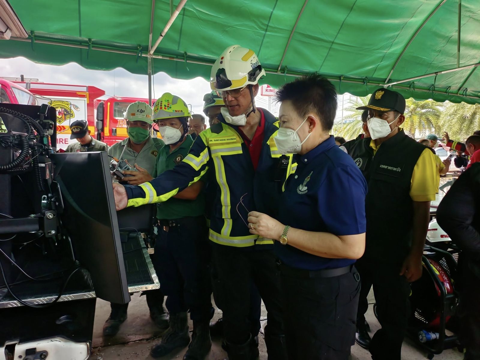ปลัดกรุงเทพมหานคร กล่าวว่า เบื้องต้นสำนักอนามัย ได้ลงพื้นที่ตรวจคุณภาพอากาศบริเวณชุมชนจุดเกิดเหตุในรัศมี 300 เมตร ทั้งจำนวน 8 จุด พบว่าเกินค่ามาตรฐานทั้งค่าฝุ่นละอองขนาดเล็ก pm 2.5 ค่าฝุ่นควันไฟ pm10 และค่าสารเคมีที่เป็นส่วนประกอบในการผลิตนั้นเกินค่ามาตรฐาน โดยสั่งการสำนักงานเขตลงพื้นที่ประชาสัมพันธ์ขอความร่วมมือประชาชนที่อาศัยอยู่บริเวณใกล้เคียงอพยพไปยังศูนย์พักพิงด่วน โดยเฉพาะเด็กเล็ก ผู้สูงอายุ ผู้ป่วยติดเตียง สำหรับผู้ที่เข้าพักพิงที่ศูนย์พักพิงโรงเรียนลำพะอง วันนี้จะต้องย้ายไปยังศูนย์พักพิงวัดสุทธาโภชน์ เนื่องจากจุดเดิมใกล้เคียงพื้นที่ไฟไหม้เกินไปมีความอันตรายต่อสุขภาพ แต่หากประชาชนที่มีความประสงค์อยู่ที่บ้าน ต้องสวมหน้ากากอนามัยที่มีคุณสมบัติป้องกัน (N95) เท่านั้น