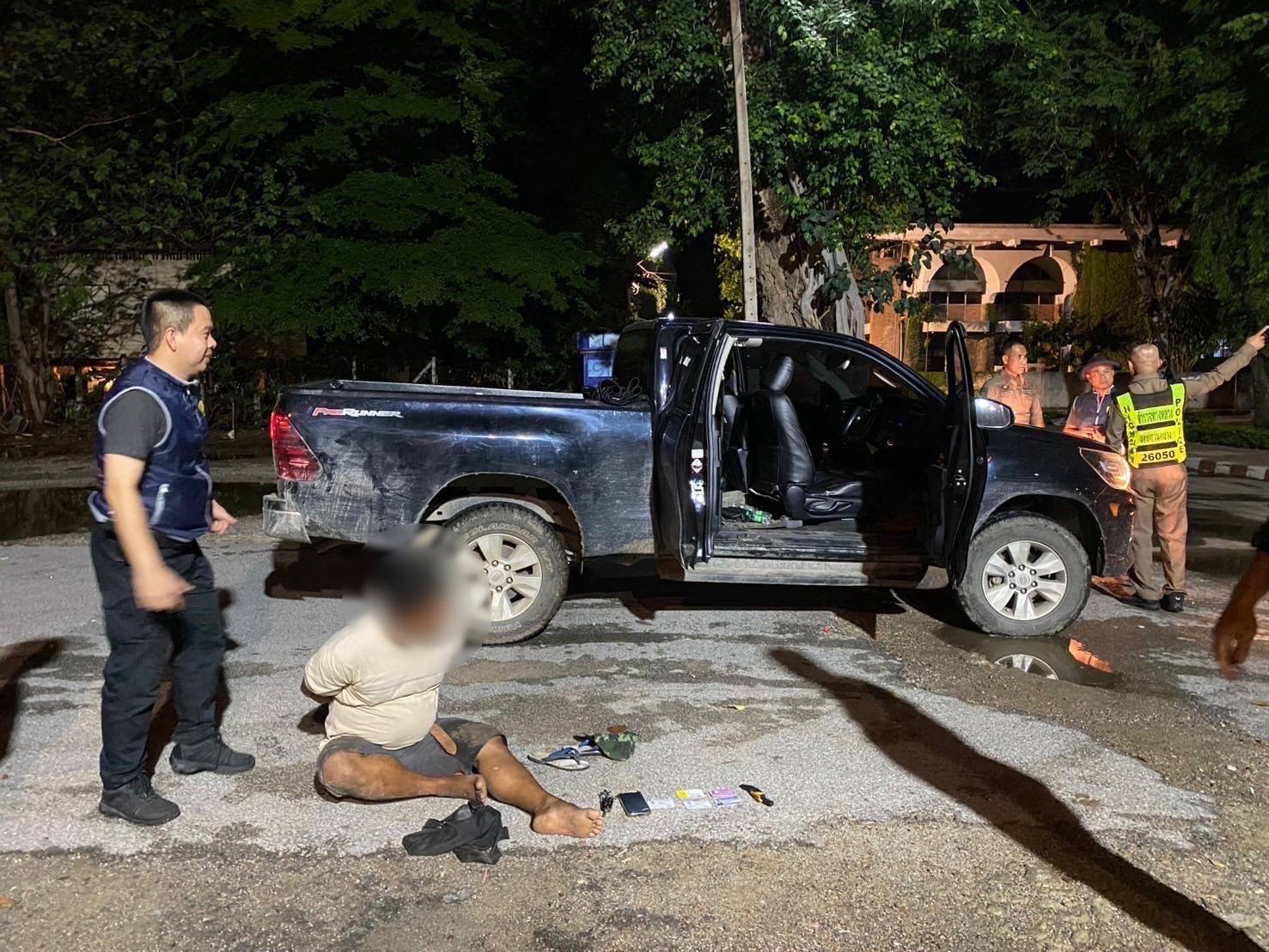 จากนั้นชุดปฏิบัติการที่ 2 ไล่ตามรถเก๋งอีกคันที่เข้ามากีดขวางการไล่สกัดของเจ้าหน้าที่ตำรวจทางหลวง และไปสกัดจับได้บริเวณถนนหลักเมือง จ.กาญจนบุรี รวมระยะทางการไล่สกัดติดตามจับกุมกว่า 38 กิโลเมตร