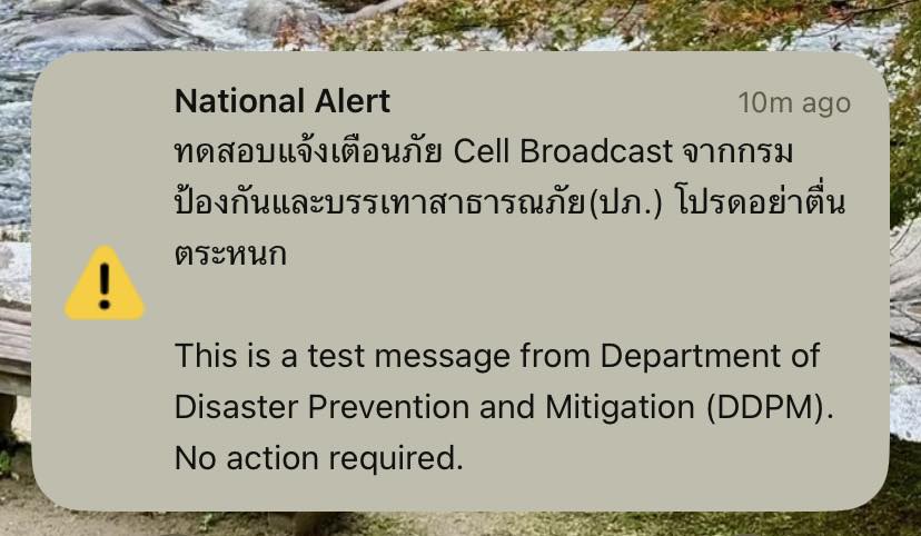 ปภ. ทดสอบระบบแจ้งเตือนภัยผ่านสัญญาณโทรศัพท์ Cell Broadcast ระดับใหญ่ 5 จังหวัด - ทดสอบครบแล้ว 3 ระดับ ตอกย้ำประสิทธิภาพระบบการแจ้งเตือนภัยของประเทศ สร้างความเชื่อมั่นให้กับประชาชน