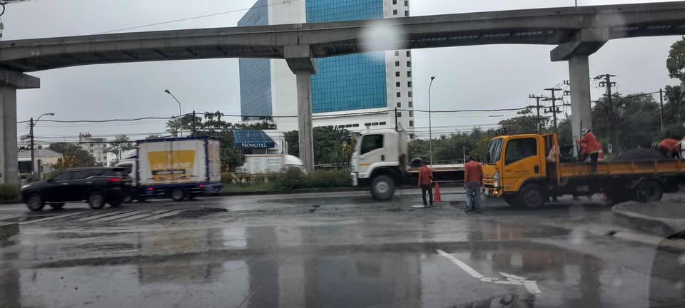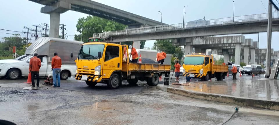 11.47 น. วันที่ 14 พ.ค.68 จนท.แก้ไข ถนนทรุดตัว หน้าคอนโด ศุภาลัยปาร์ค ศรีนครินทร์ ถนนศรีนครินทร์ ขาเข้า ใกล้วัดศรีเอี่ยม การจราจรติดขัด ท้ายสะสมแยกศรีลาซาล