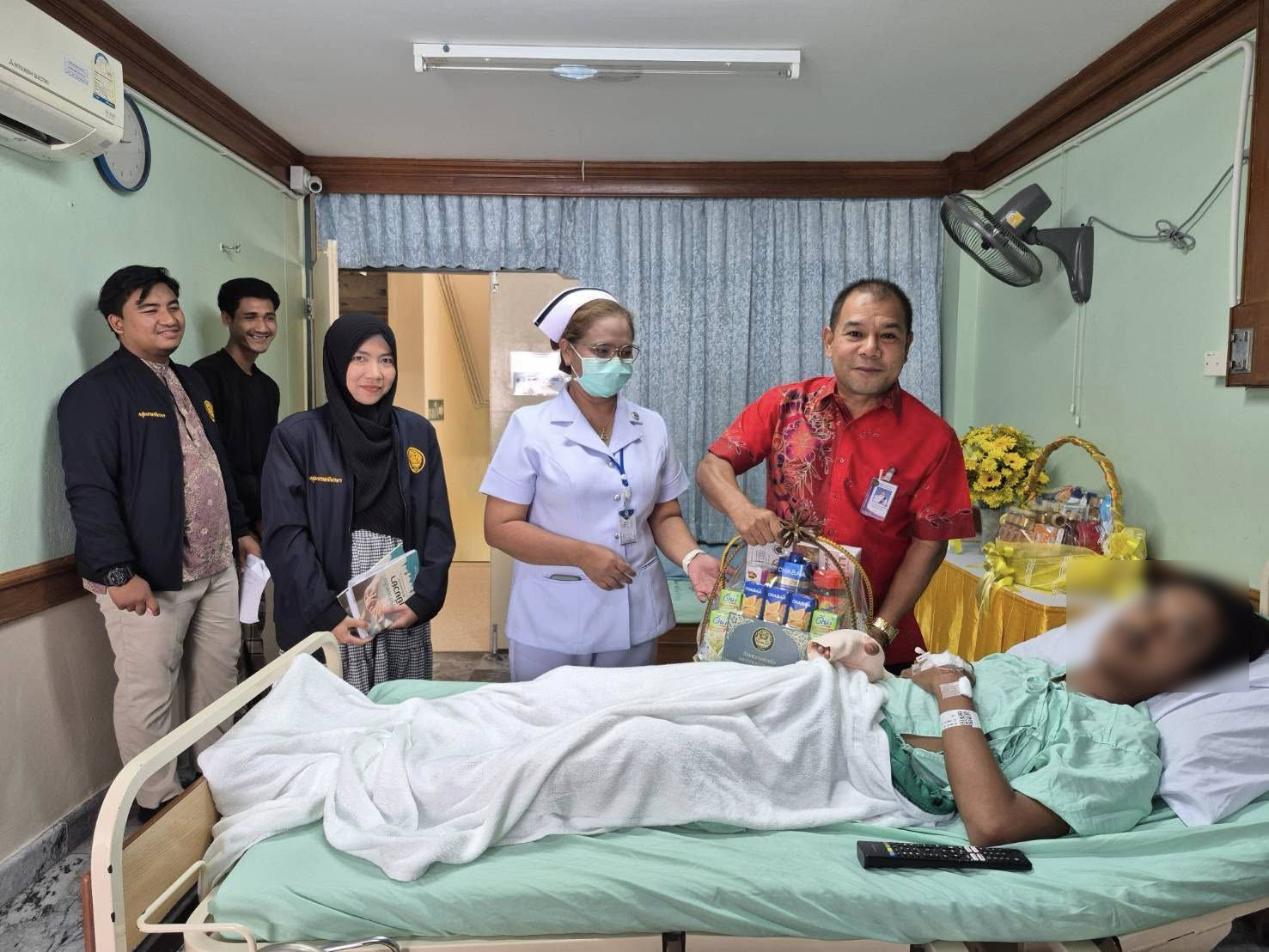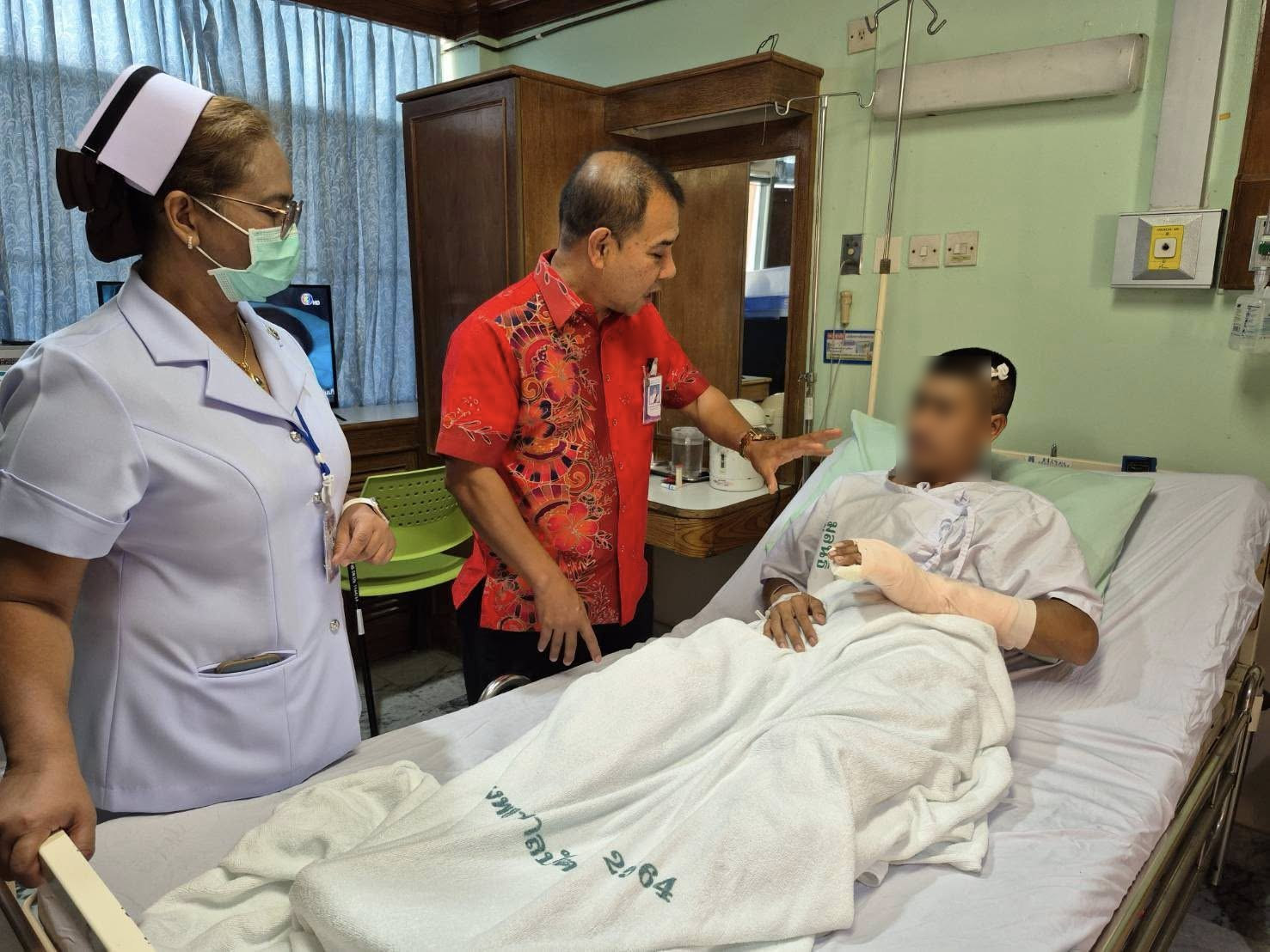 ในการนี้ นายแพทย์ สมหมาย บุญเกลี้ยง ผู้ช่วยเลขาธิการ ศอ.บต. ได้พูดคุยให้กำลังใจกับผู้บาดเจ็บทั้ง 3 ราย พร้อมมอบกระเช้าเยี่ยมในนาม เลขาธิการ ศอ.บต. เพื่อเป็นขวัญกำลังใจ